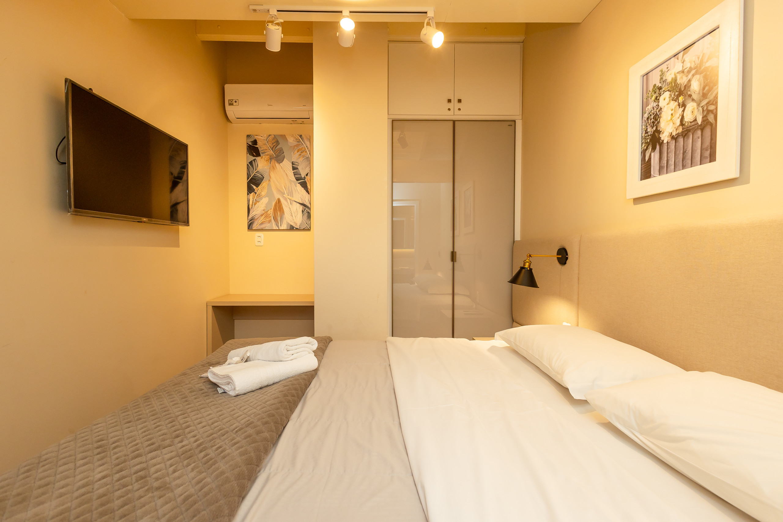 NEW! Welcome to Rosas 401 apartment! Located in the heart of Gramado, opposite Rosas Square (with a children's playground, extending along Torta Street), it is about 600m from Covered Street and will allow you to enjoy the centre while leaving your car in the garage (1 parking space)! You will find several restaurants, markets, and tourist attractions very close to the building!