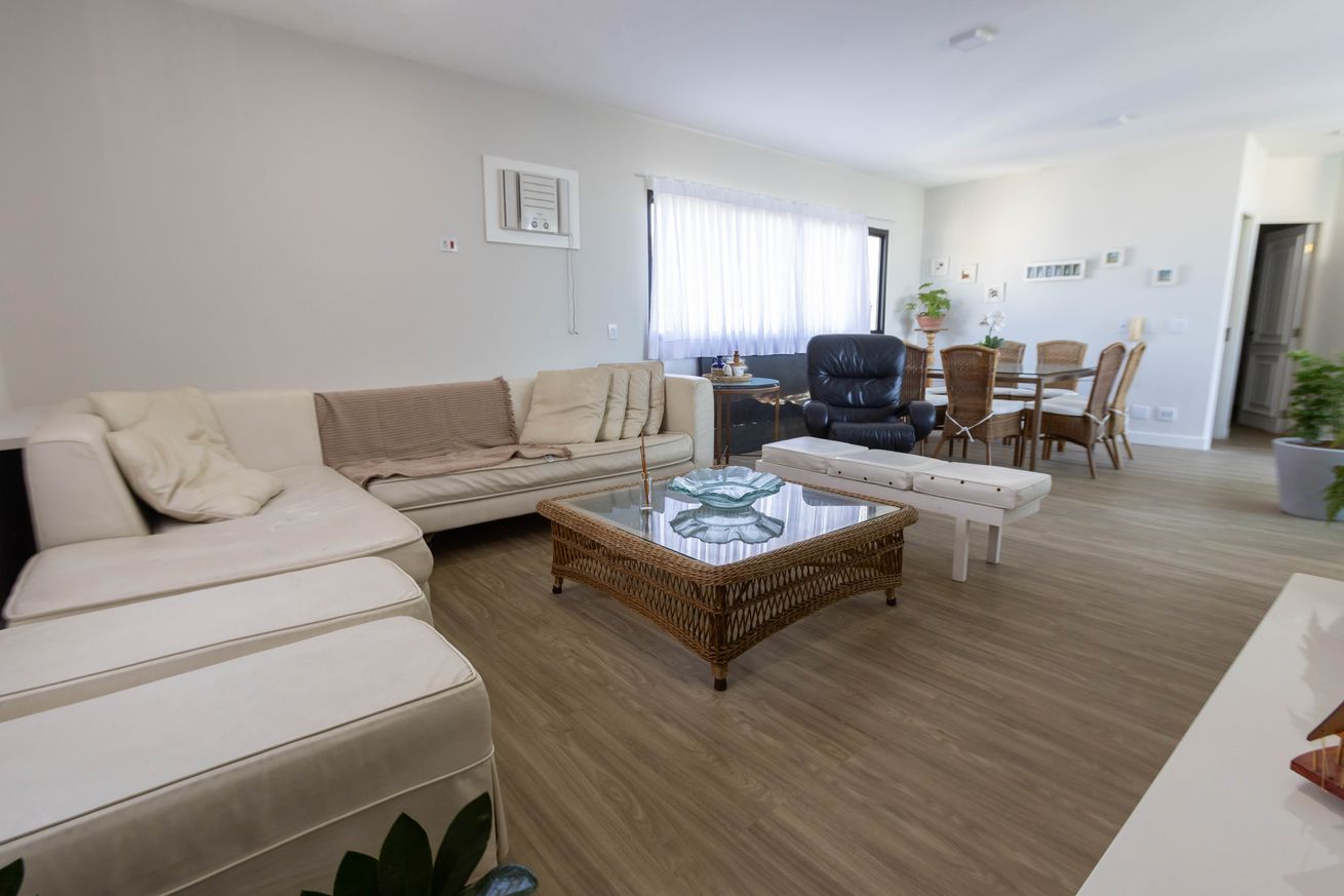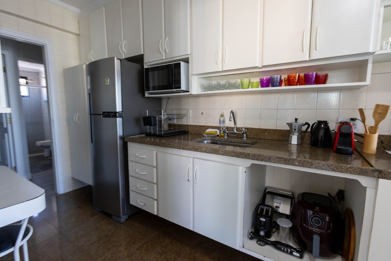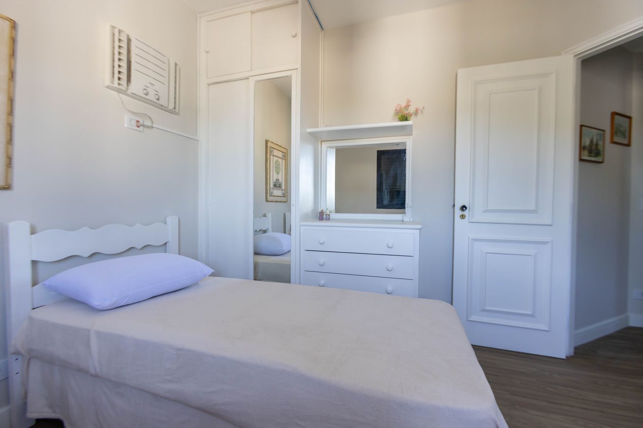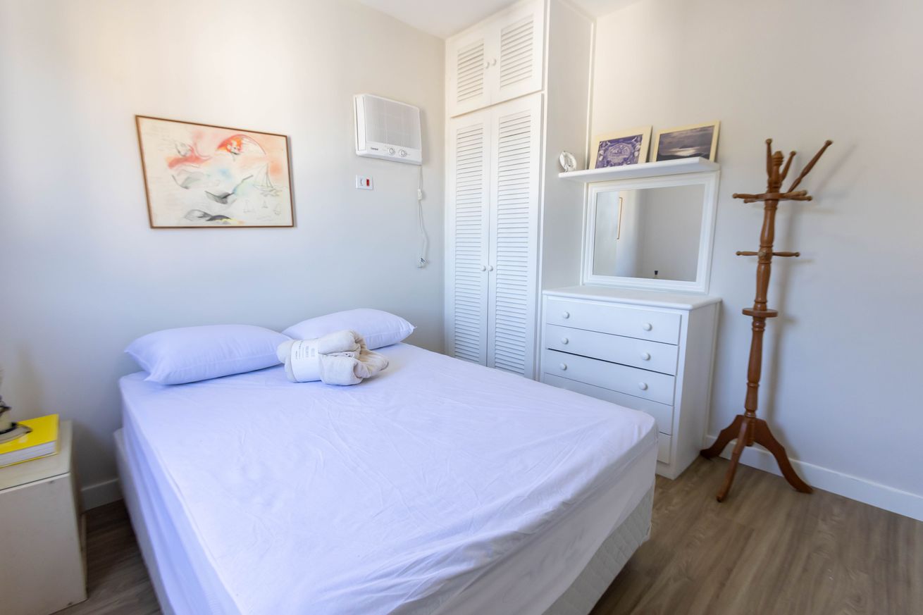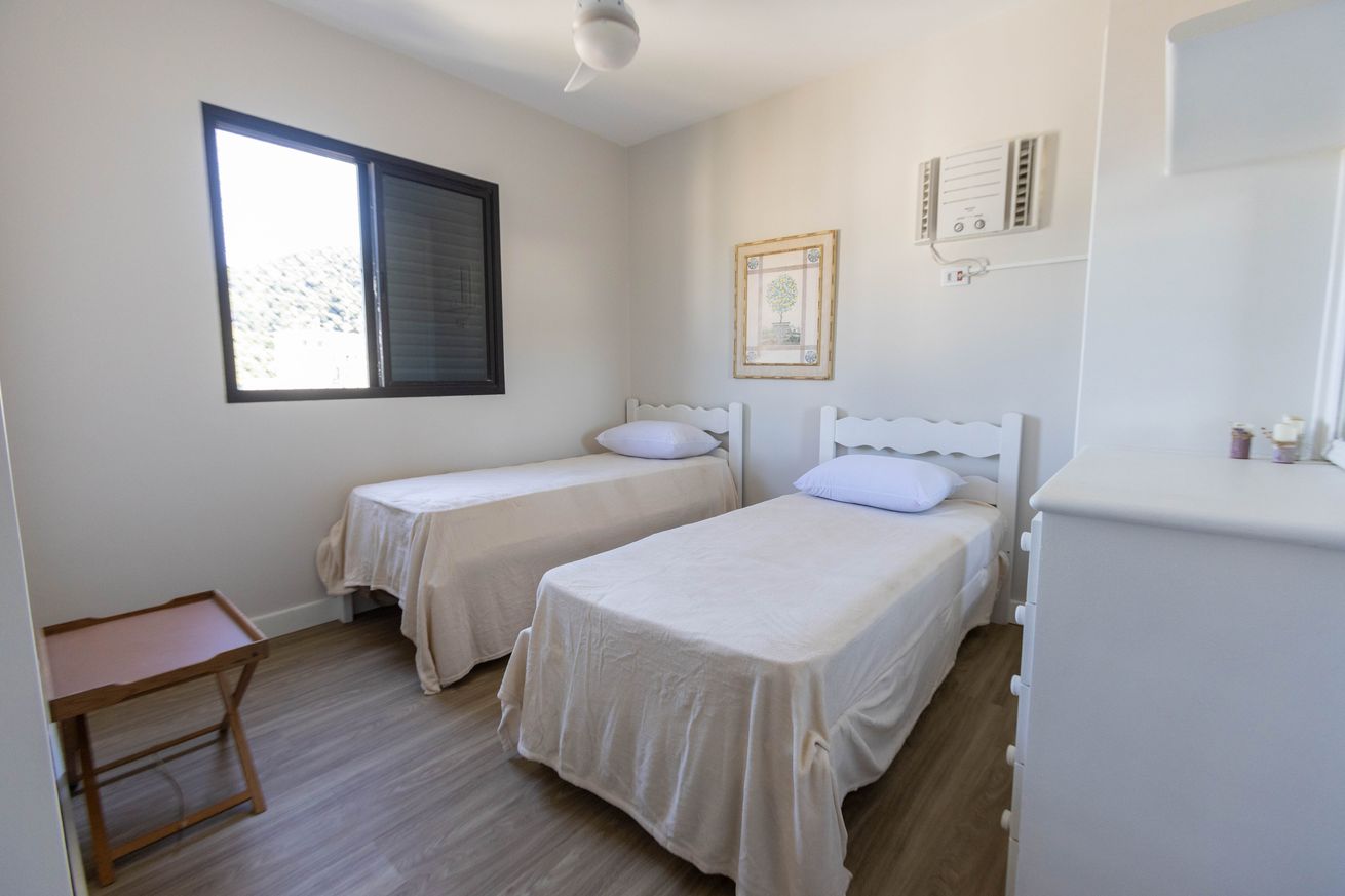 The apartment in Guarujá has 4 bedrooms and has capacity for 8 people.