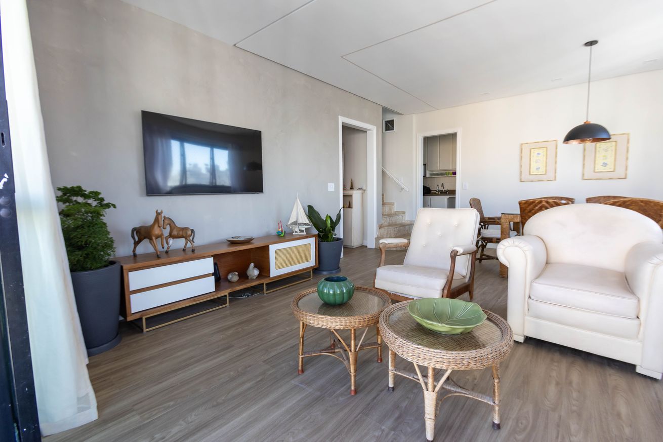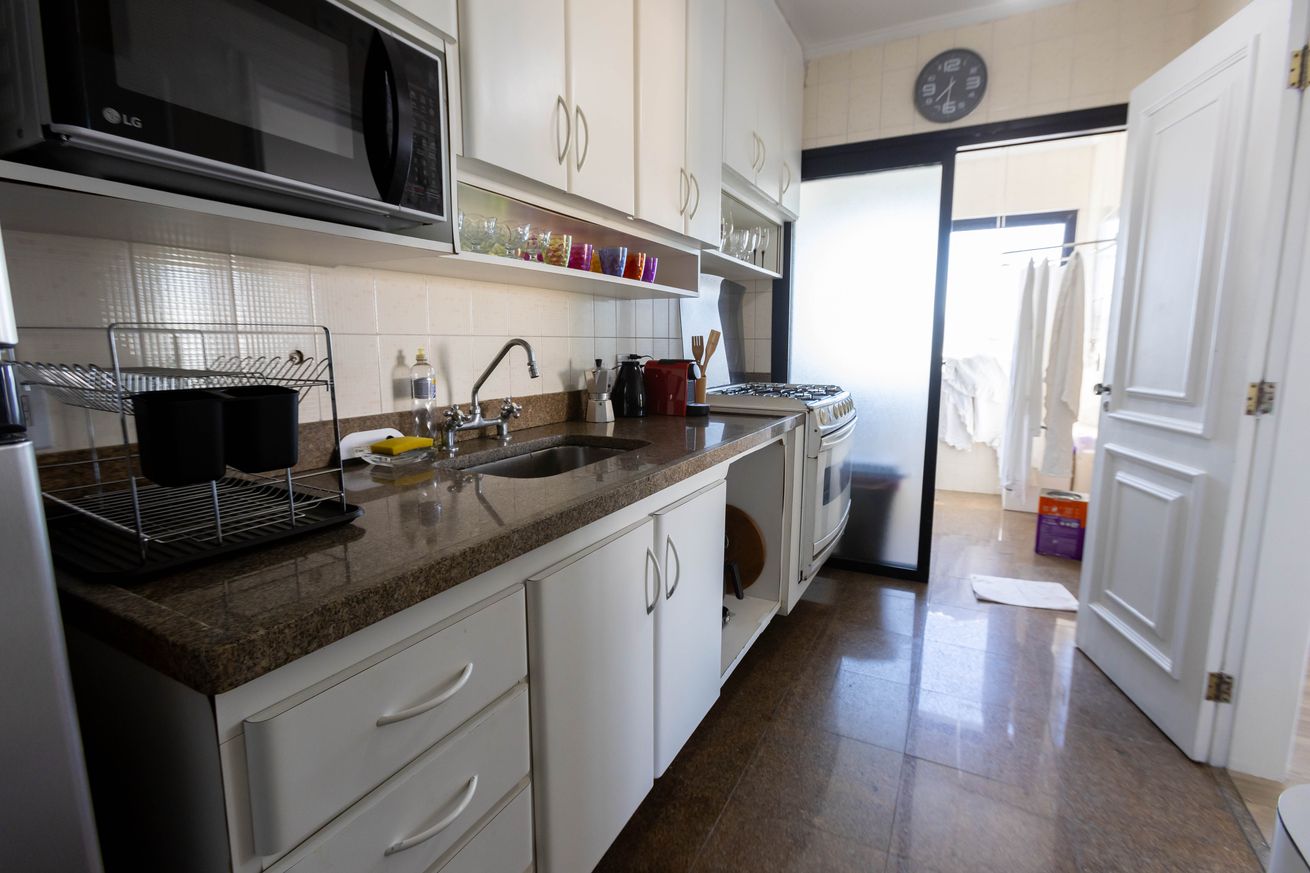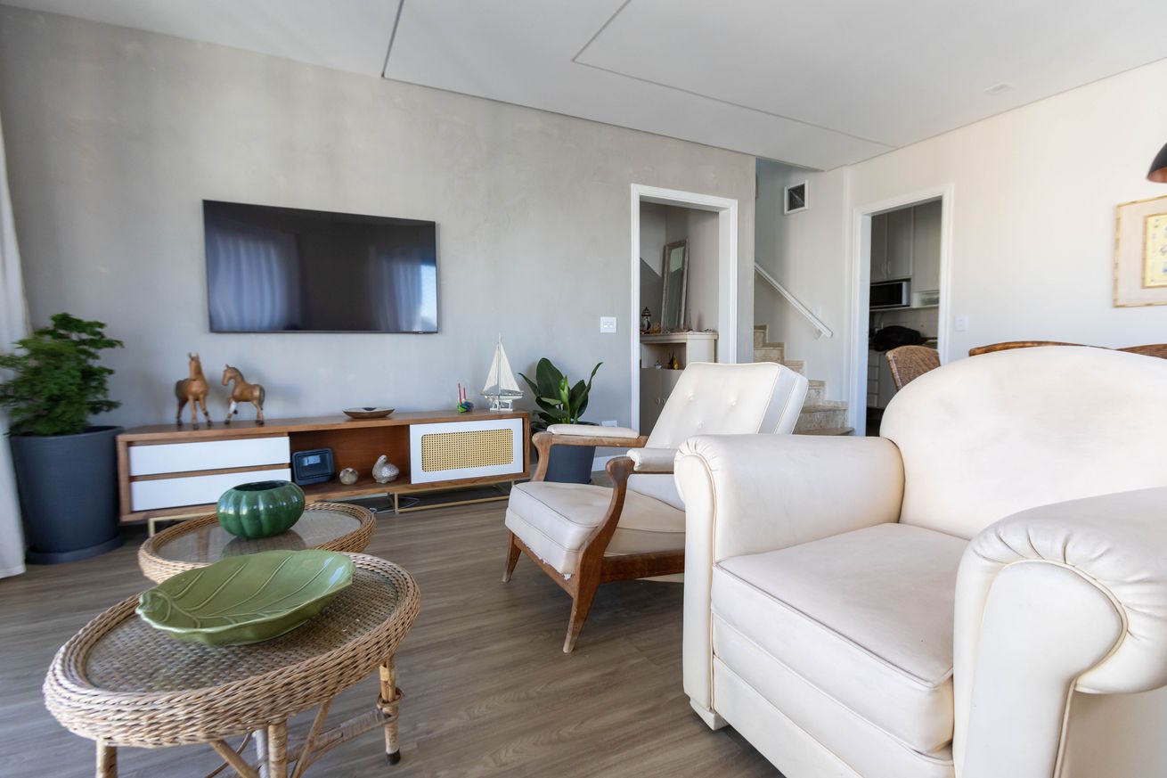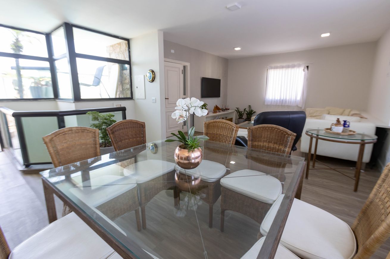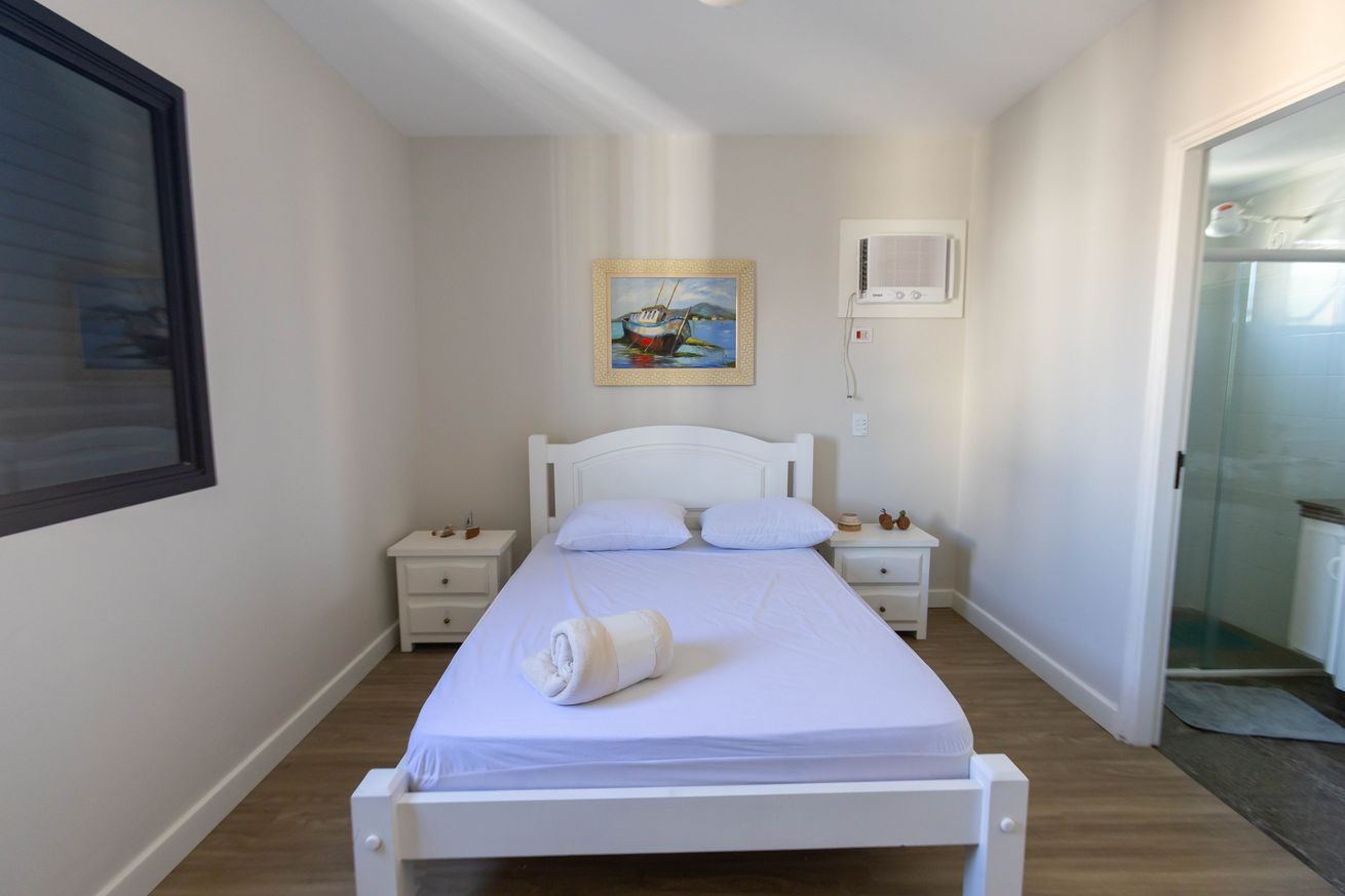 The apartment in Guarujá has 4 bedrooms and has capacity for 8 people.