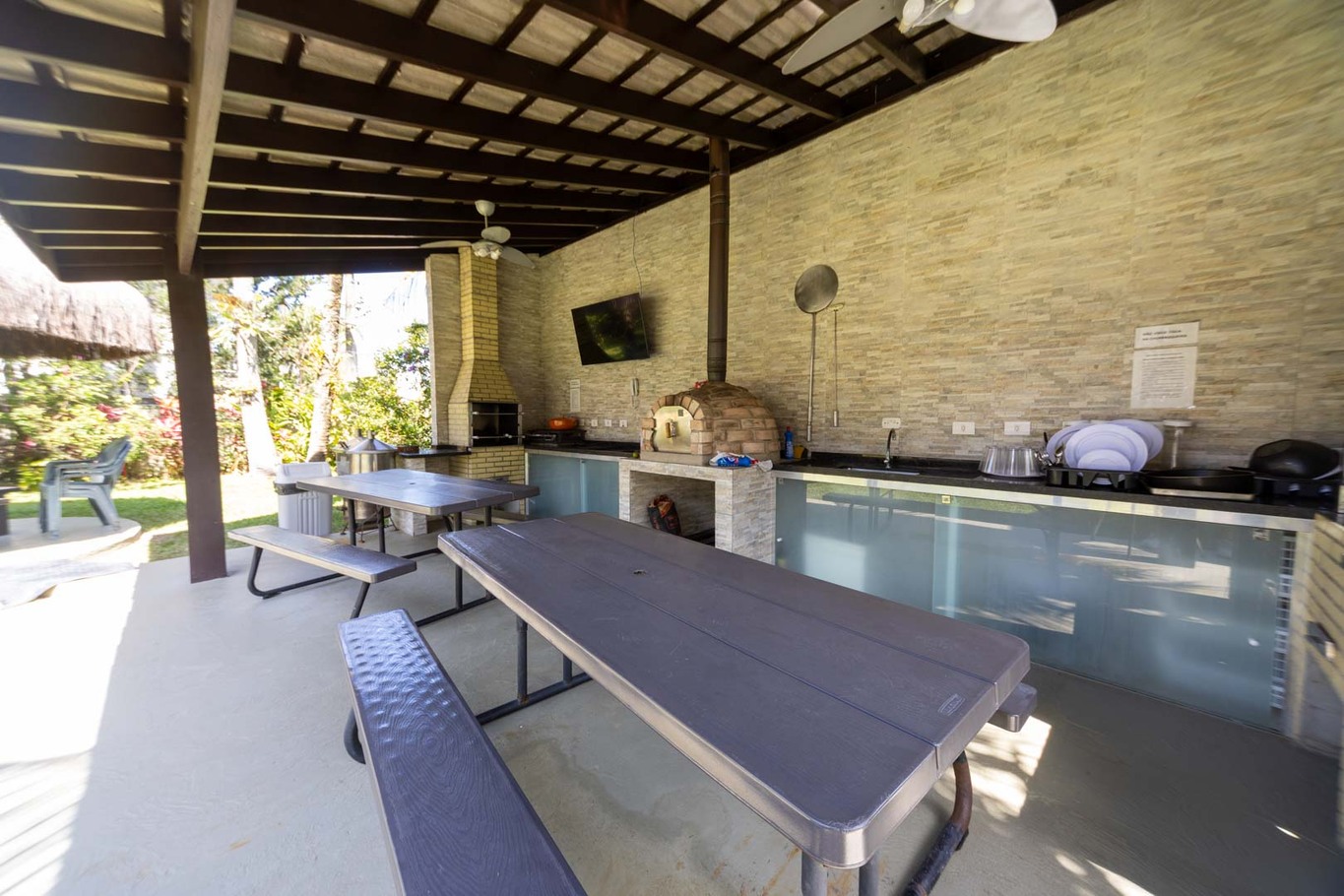 In the gas independent kitchen, microwave, oven, freezer, kitchen utensils, kettle and hob are provided.