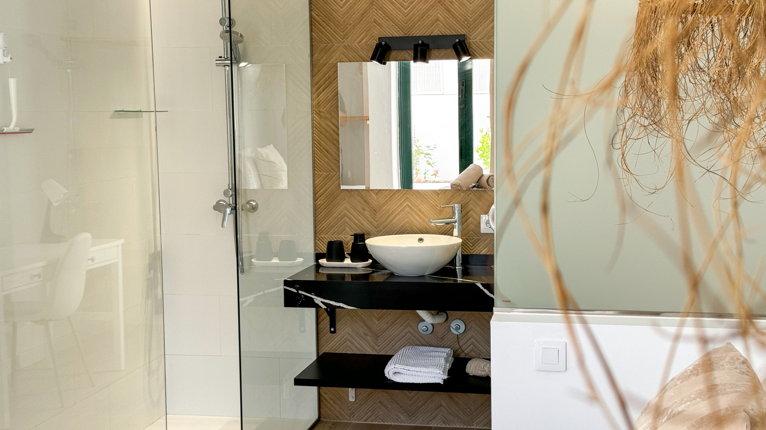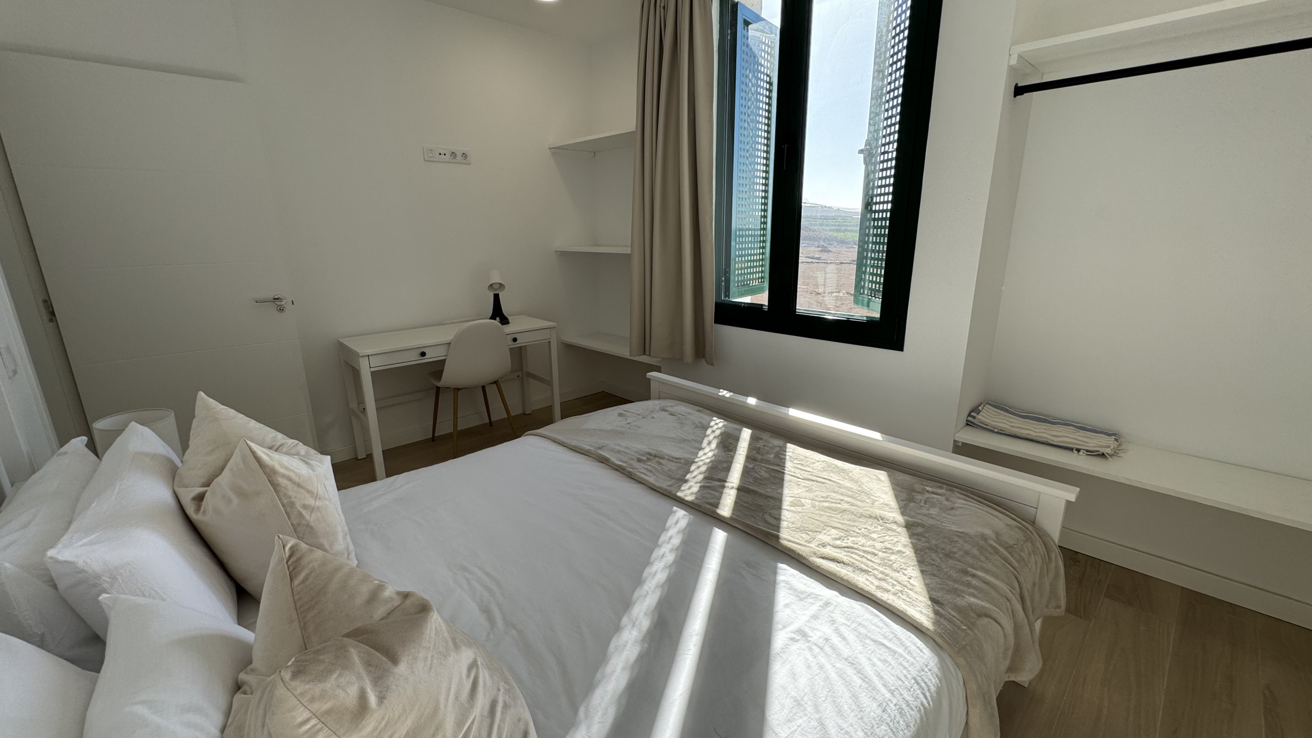 Lilias Home has three bedrooms and is an ideal option for both families and remote workers. Although located within a building, it has independent access and a private swimming pool. On the ground floor, there is a fully equipped kitchen with all necessary appliances, a comfortable living room with a large-screen television (with Astra satellite channels), wifi, and a guest toilet. On this same floor is the main bedroom, which includes an elegant en-suite bathroom and is perfect for those who prefer to avoid stairs.