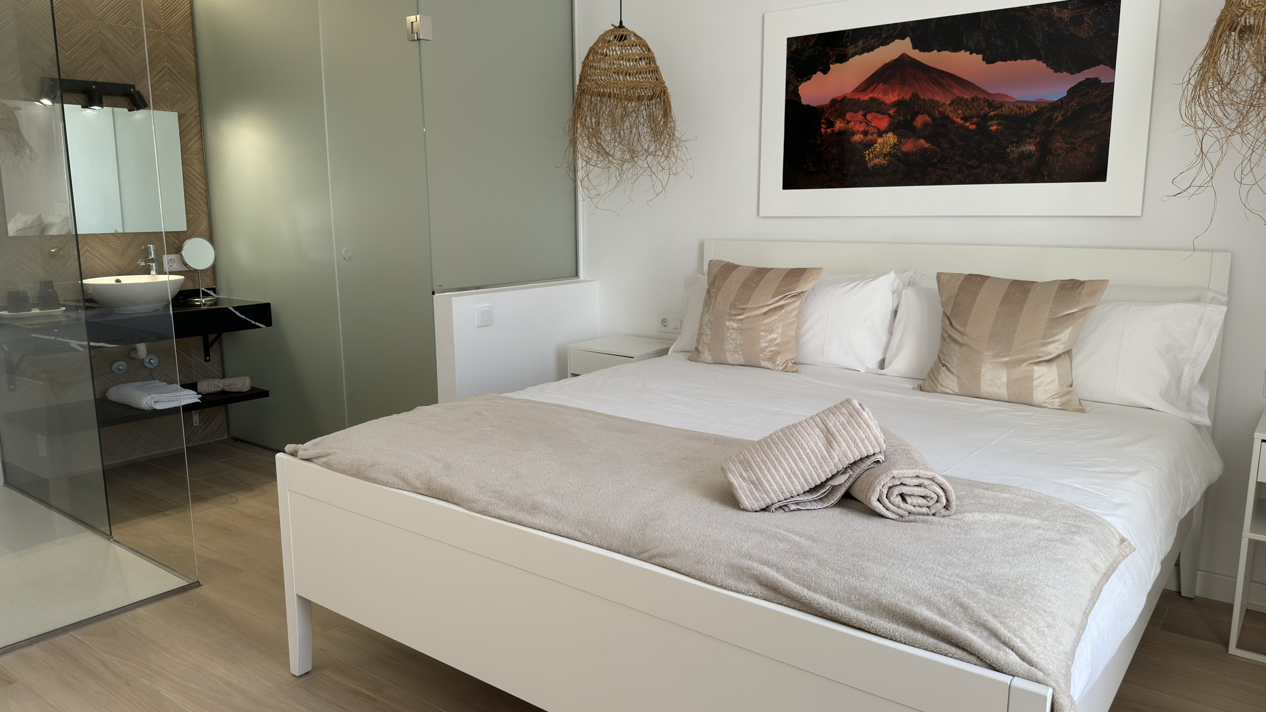 This modern holiday home offers a comfortable and relaxing experience, just a short walk from Playa La Arena beach and the sea. It features a private pool that can be heated for an additional supplement, ideal for enjoying throughout the year.
