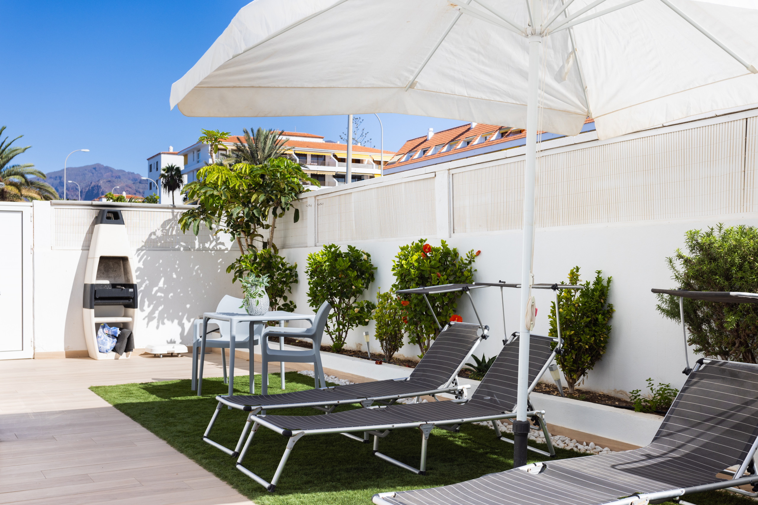 The outer space is spacious and very pleasant, with sun loungers, barbecue area and a perfect table for outdoor meals.