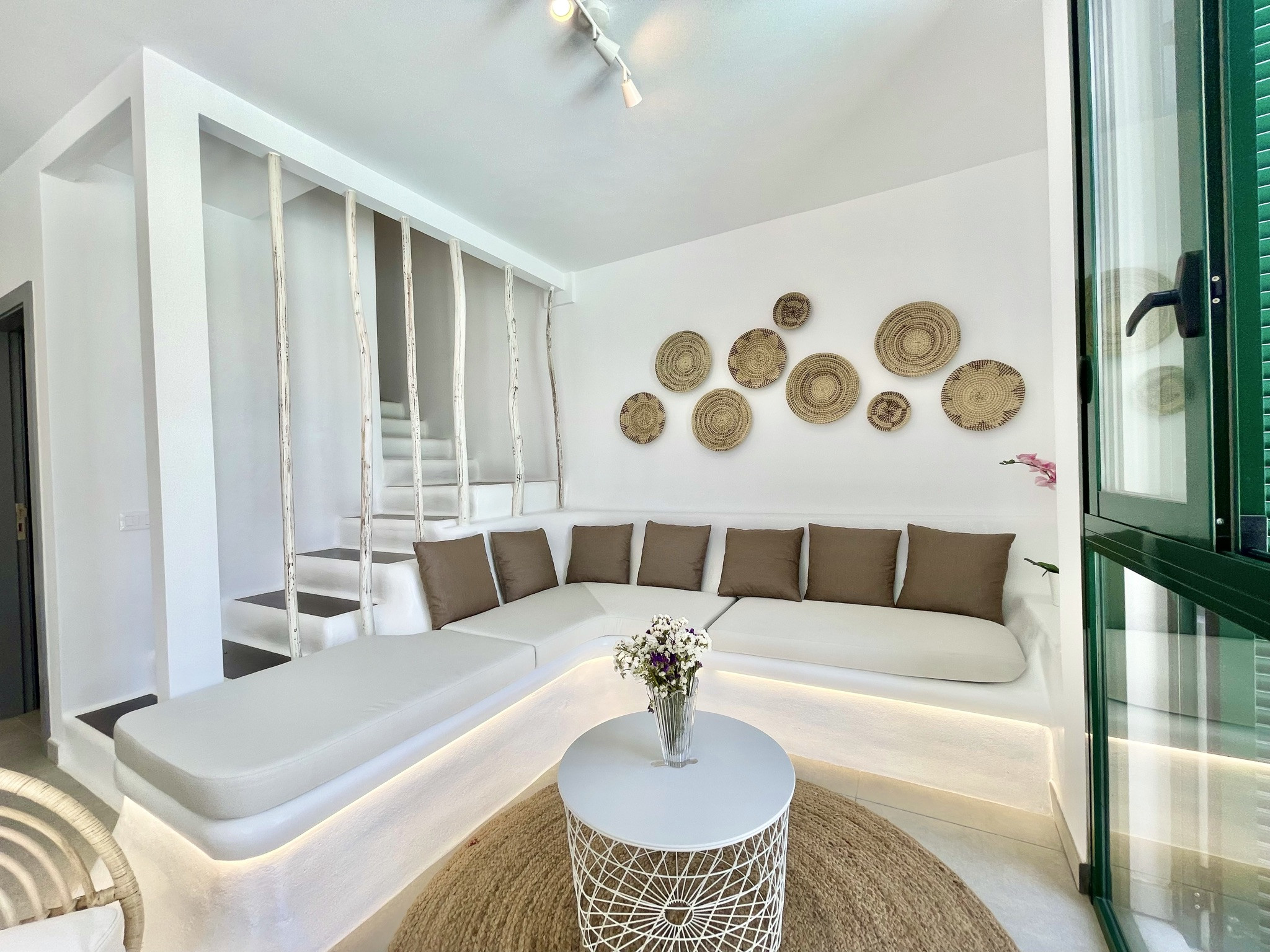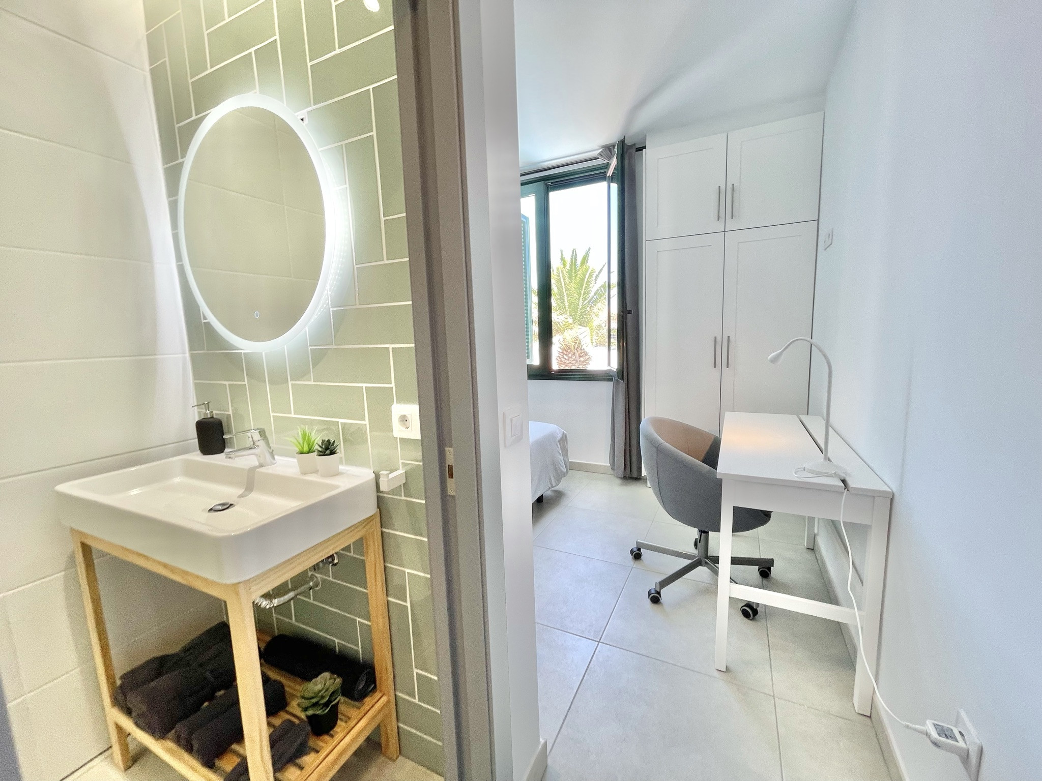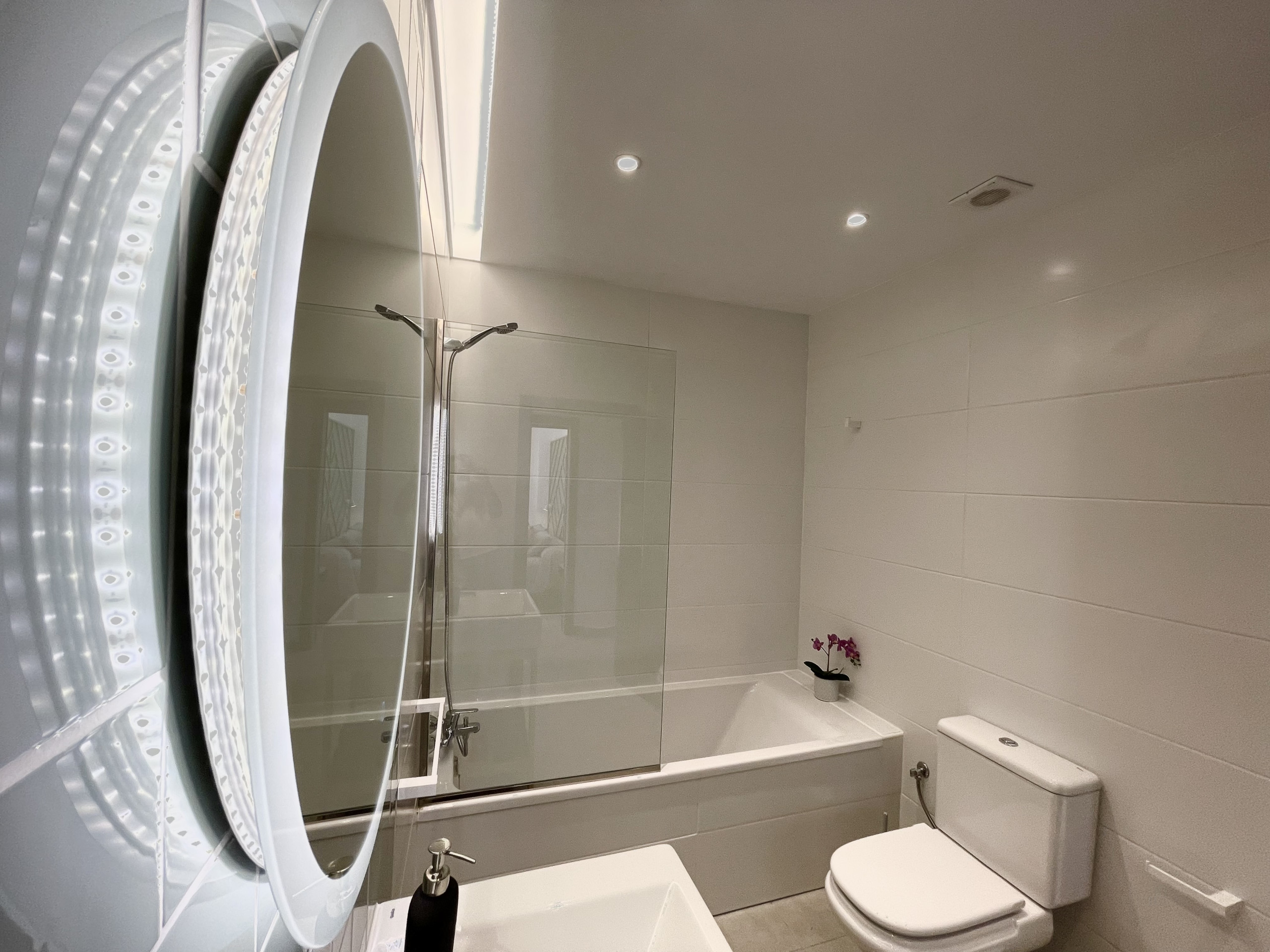 Taucho Suite is a holiday rental house with 4 bedrooms ideal for families and remote workers. It is inside a building, but with private access and private pool. On the ground floor you have a fully equipped kitchen with all the necessary appliances for cooking, large dining room and living room with large TV (Astra satellite) and wifi, separate toilet. The main bedroom with a great bathroom design and bathtub in the bedroom is downstairs, so there are no steps to walk. On the first floor there are 3 bedrooms. First bedroom with private bathroom, TV and desk. The second with balcony. The third with TV and desk. There is another bathroom for these 2 bedrooms with bathtub. As it is located on a dead-end street, it is easy to find parking just in front. It is a quite residential area.