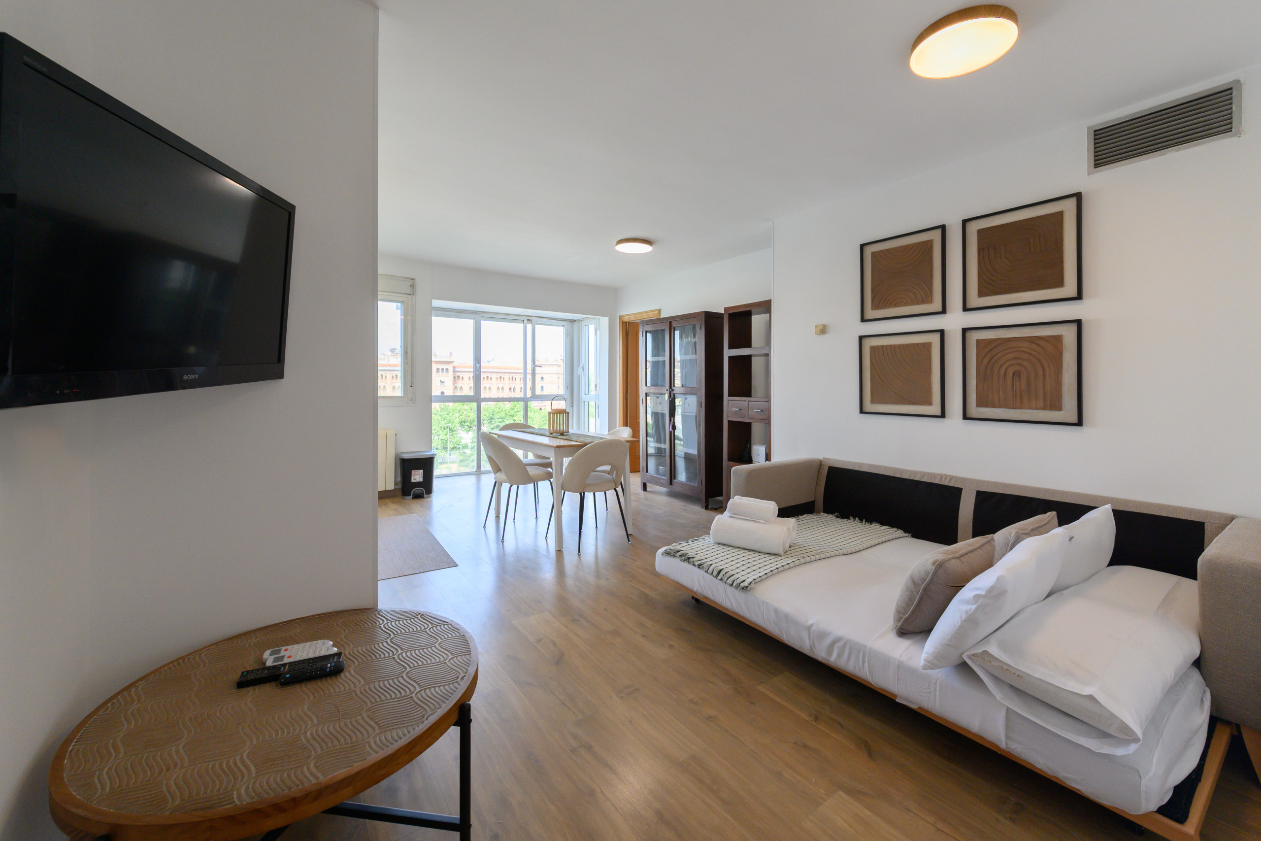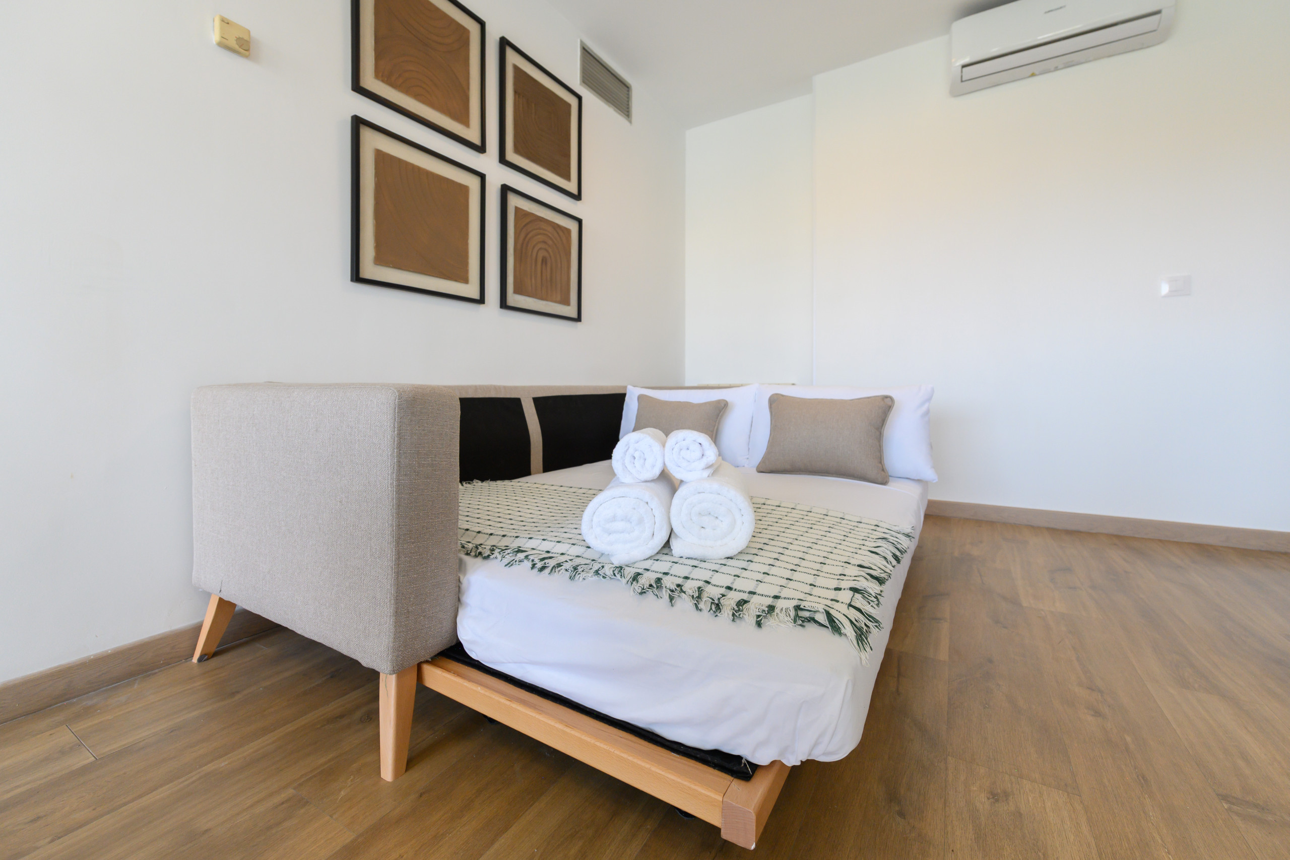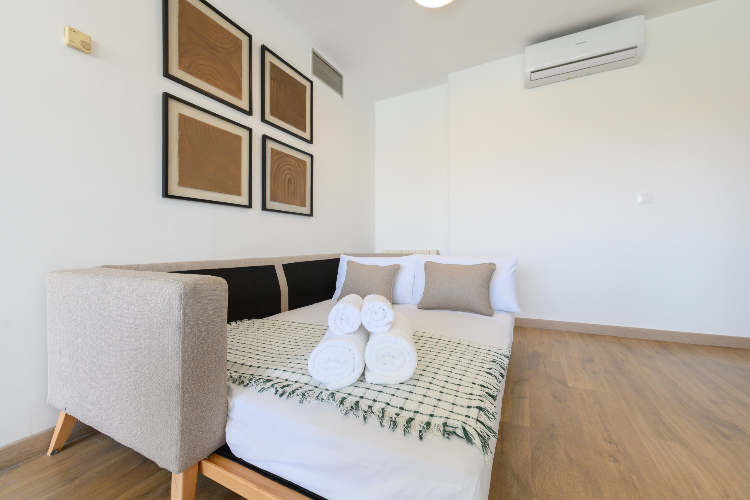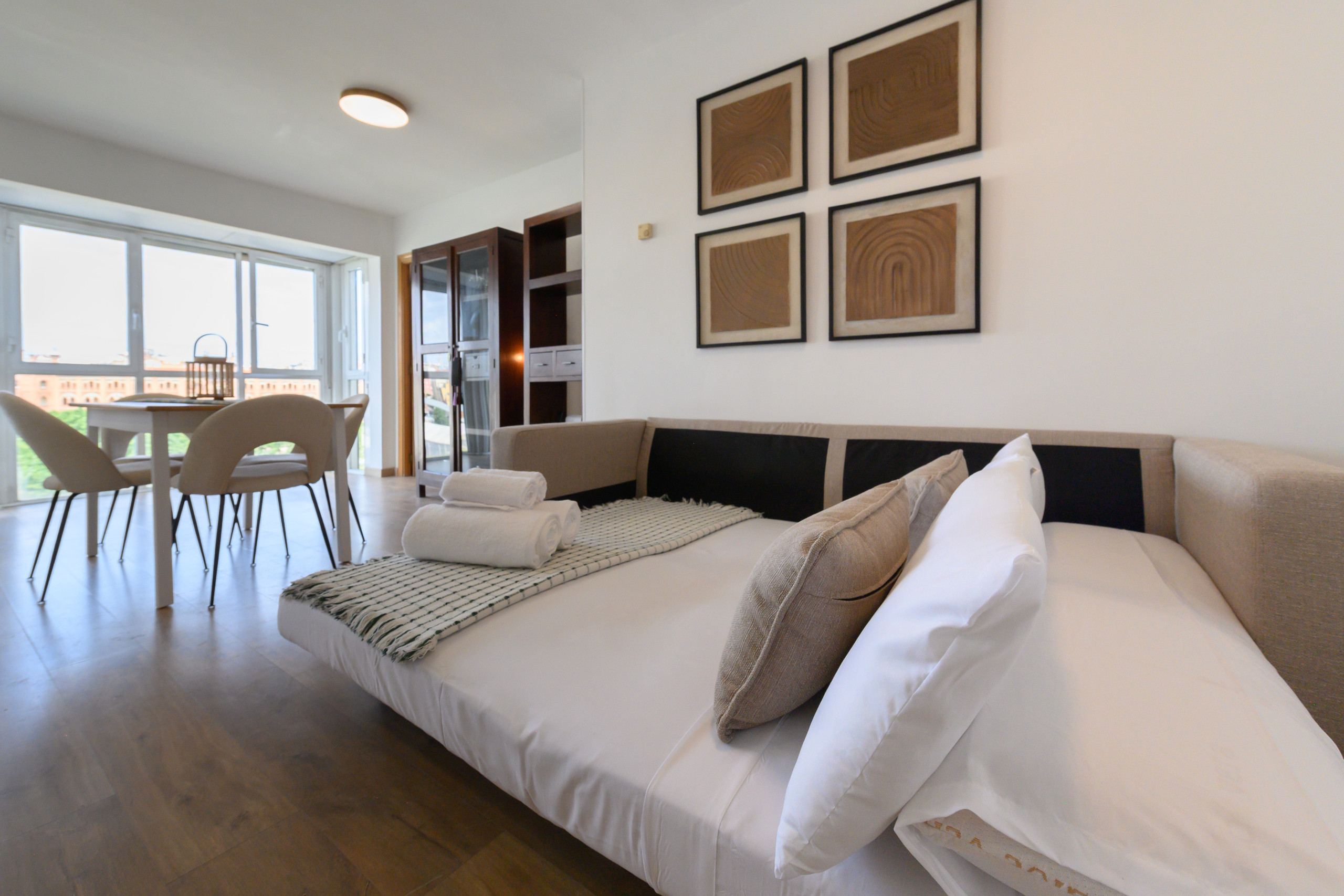 › Holiday apartments Spain › Holiday apartments Madrid › Holiday apartments Ciudad Lineal › Modern 1-bedroom flat with large windows and sofa bed for guests in Madrid