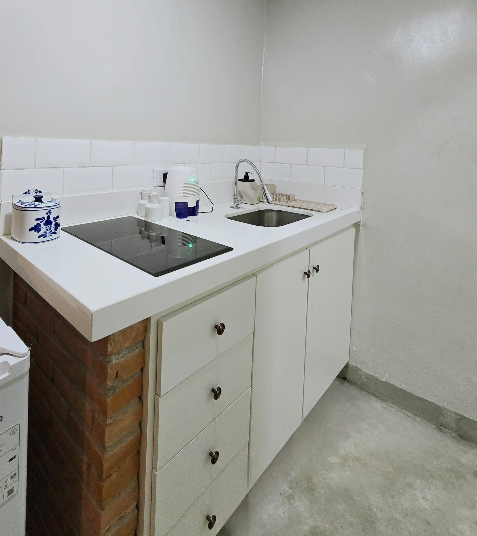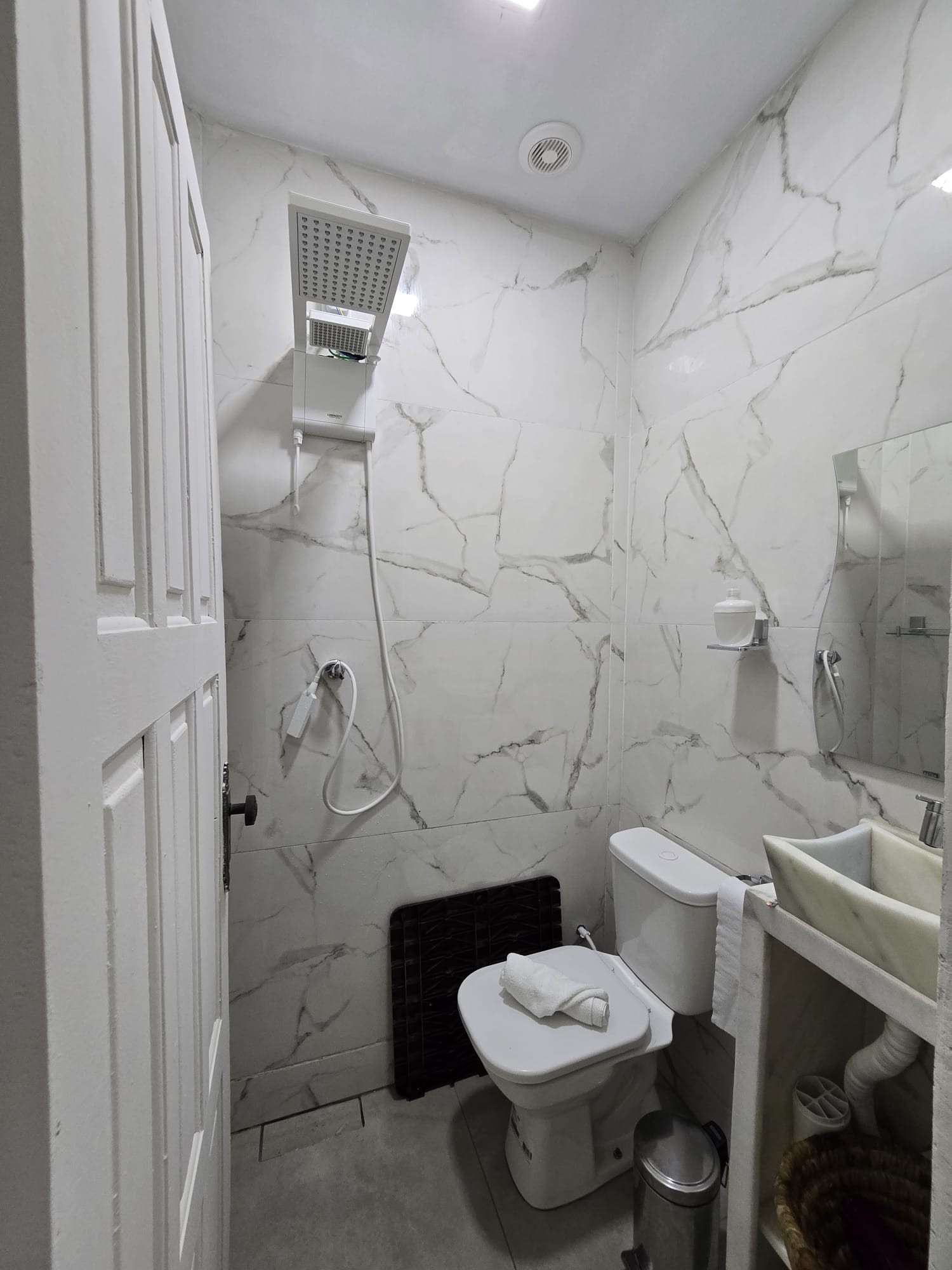 - Bathroom with electric shower, hair dryer and basic hygiene kit