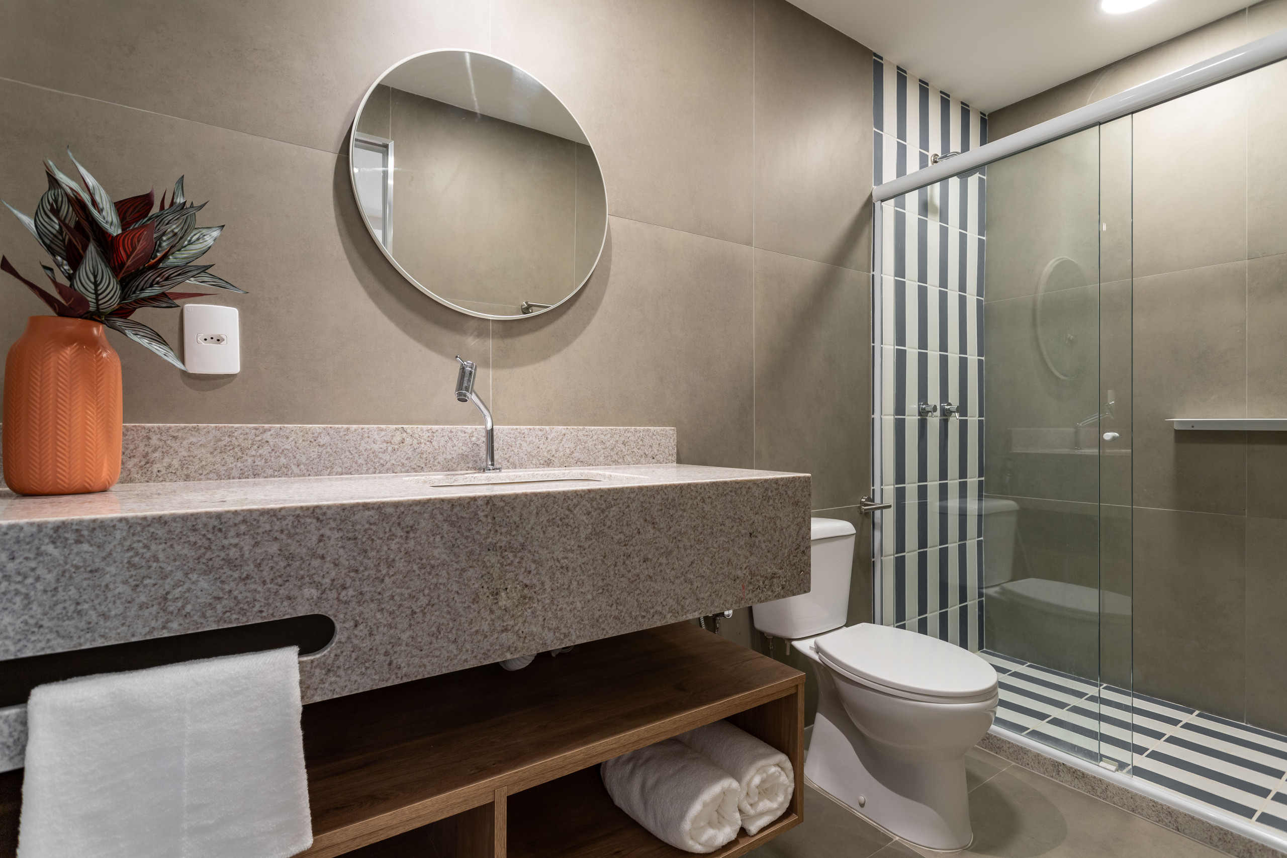 The space still offers amenities that go beyond expectations, including a coworking area, ideal for those who need to reconcile leisure and work, and a practical smart supermarket, ensuring quick access to essential items without leaving the condominium. For your convenience, there is also a 1-volume luggage room and a changing room, with shower and toilet, both available free of charge to guests, in addition to 24-hour reception. Everything was designed to provide you with a stay with maximum comfort, practicality, and convenience.