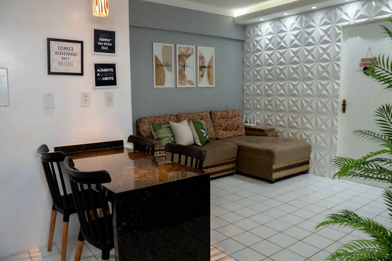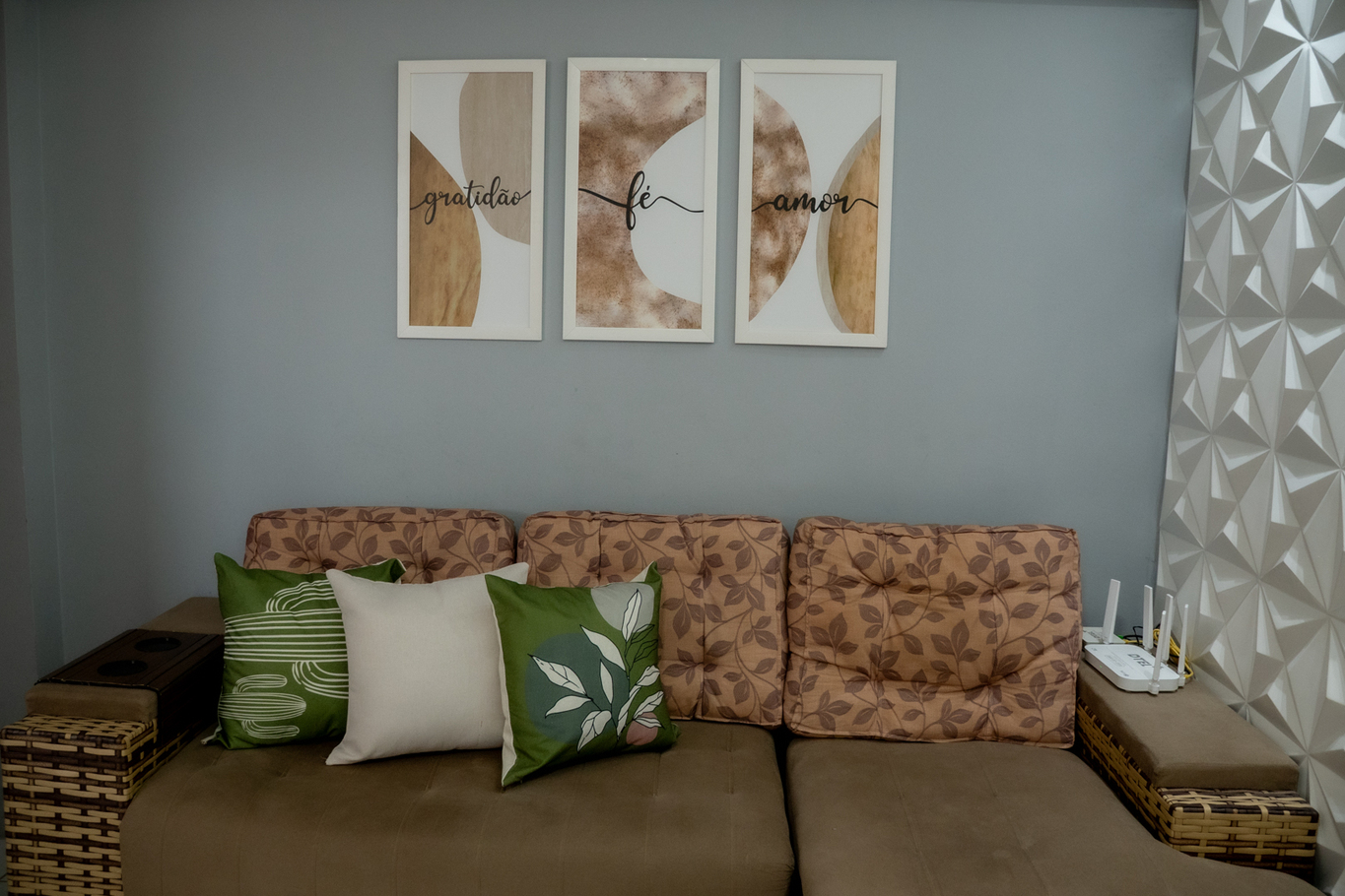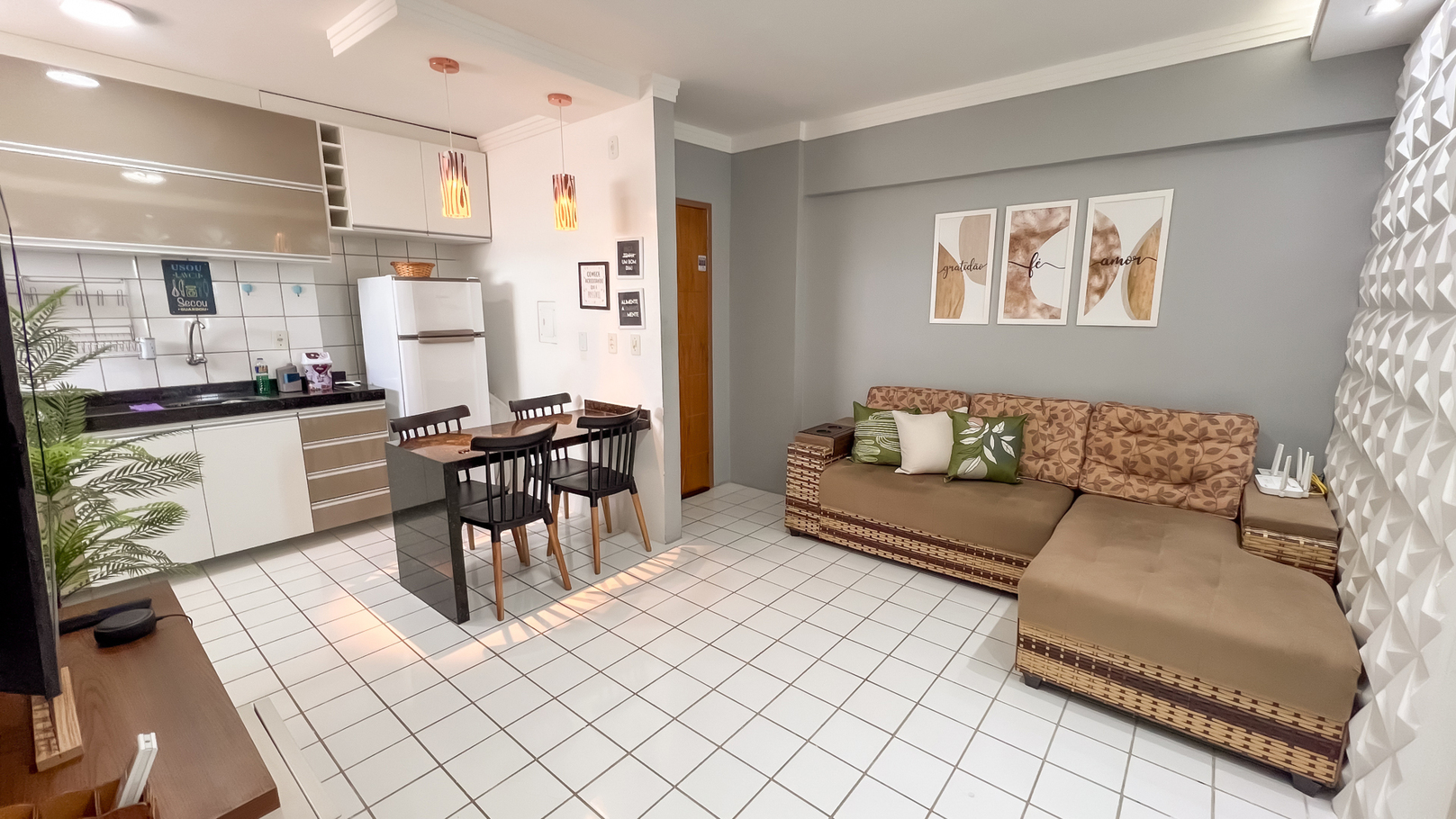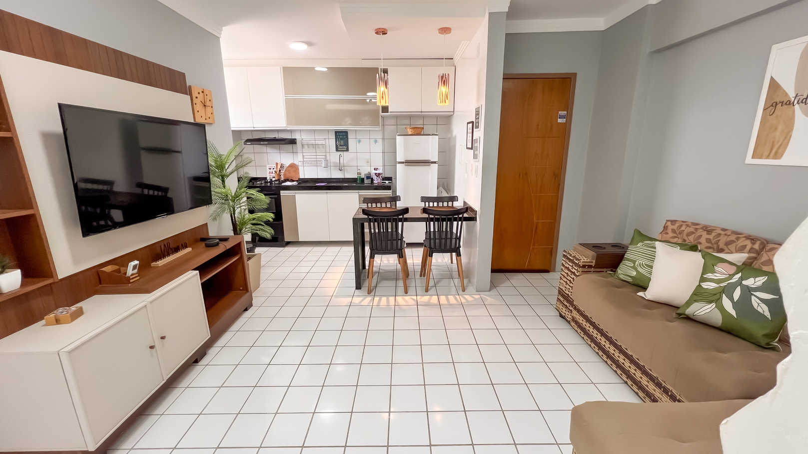 - Living room with sofa, TV Box with open channels and streaming, Alexa and turbo fan