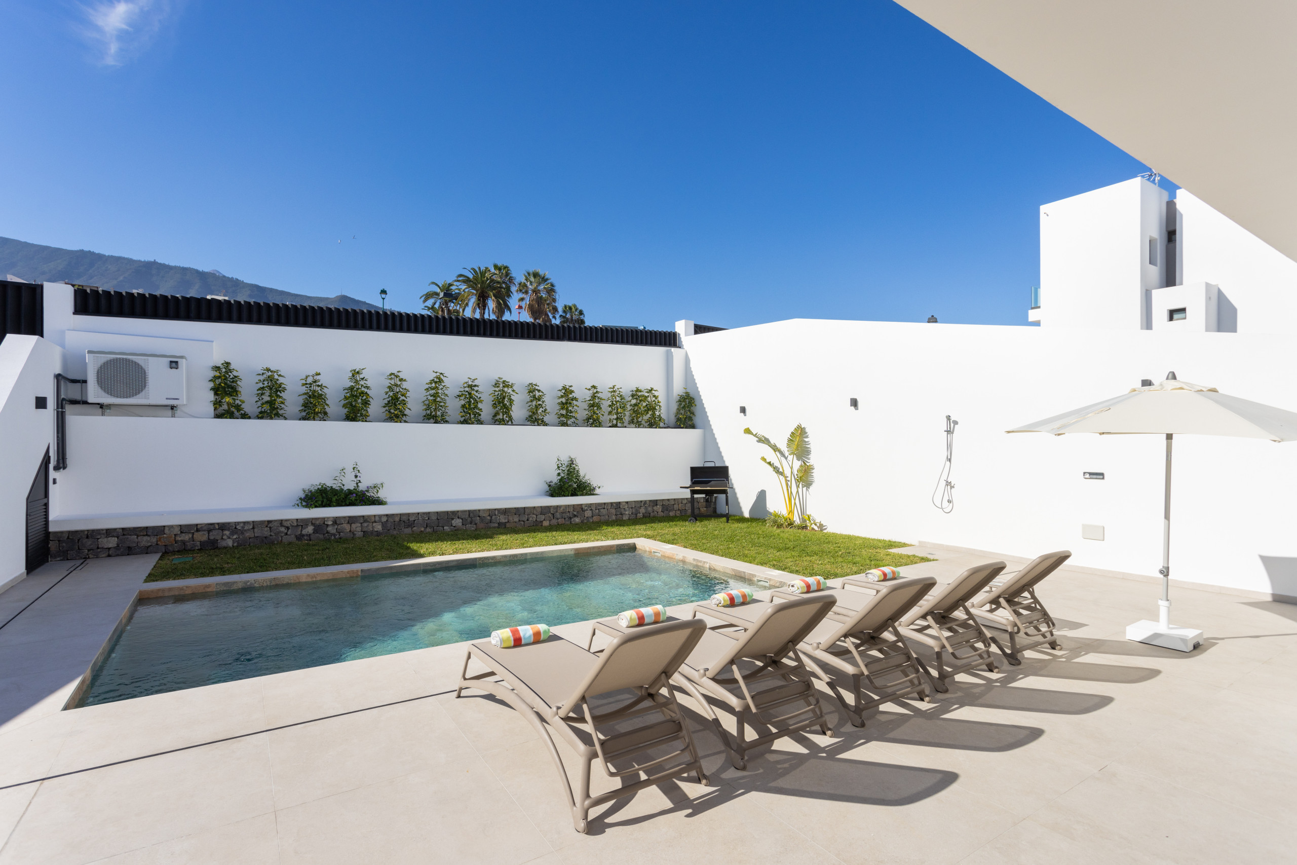 Enjoy its magnificent terrace, private garden, swimming pool and an upper balcony with mountain views. It is an ideal option for both families and groups of friends or people who work remotely, as it has high-speed internet connection. Located just five minutes by car from Puerto de la Cruz and close to all necessary services, this house is the perfect place for an unforgettable stay.