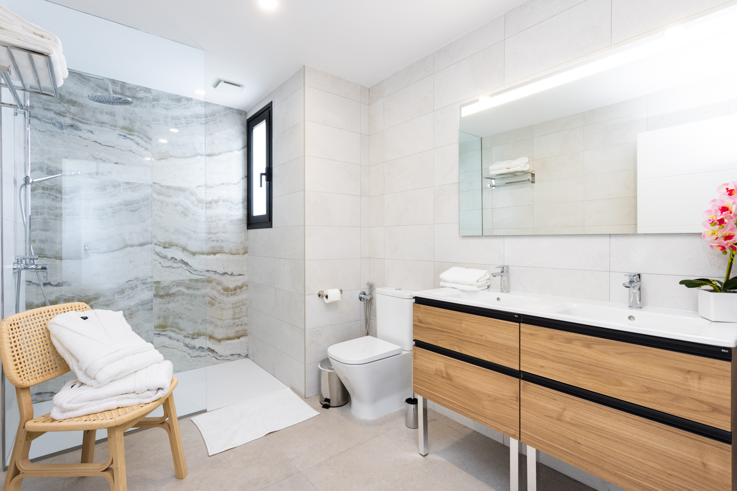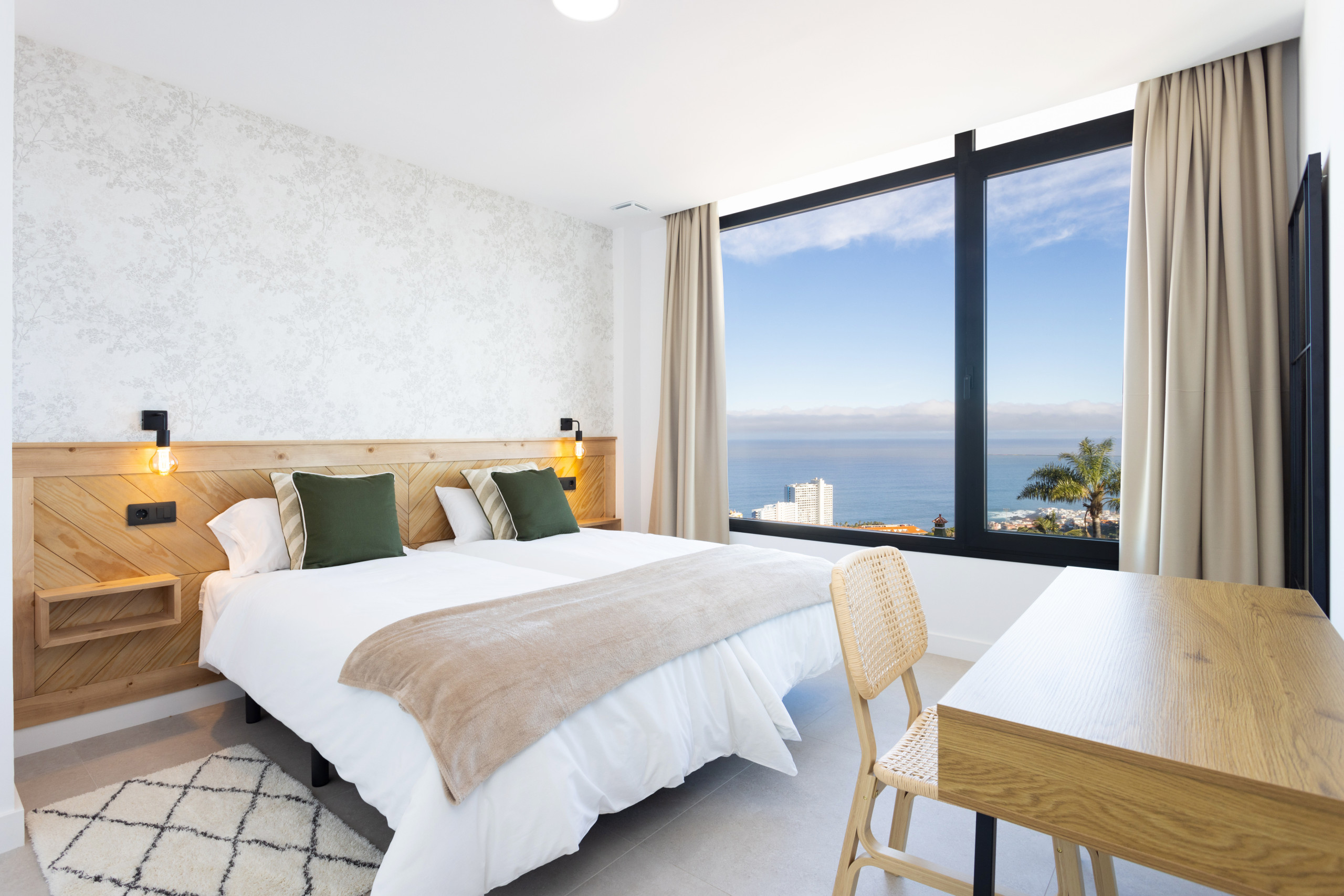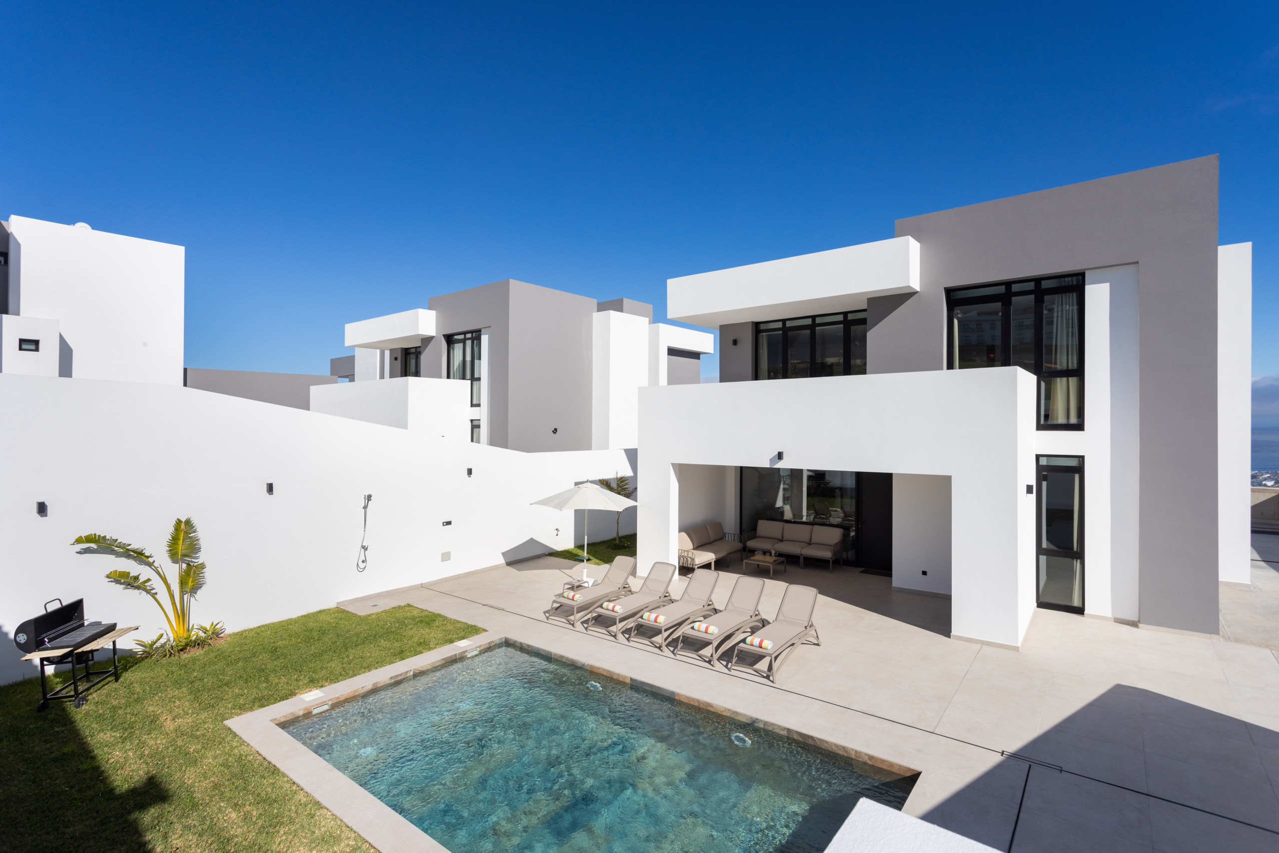 Gorvorana 3 is characterised by its luminosity and welcoming design. On the upper floor, there are five bedrooms and four bathrooms, as well as a south-facing balcony offering views of the mountain and the private pool. On the ground floor, there is a large open space with a living room, dining room and kitchen, all framed by spectacular views of Puerto de la Cruz. Also on this floor, there is an additional bedroom and a bathroom with a shower.
