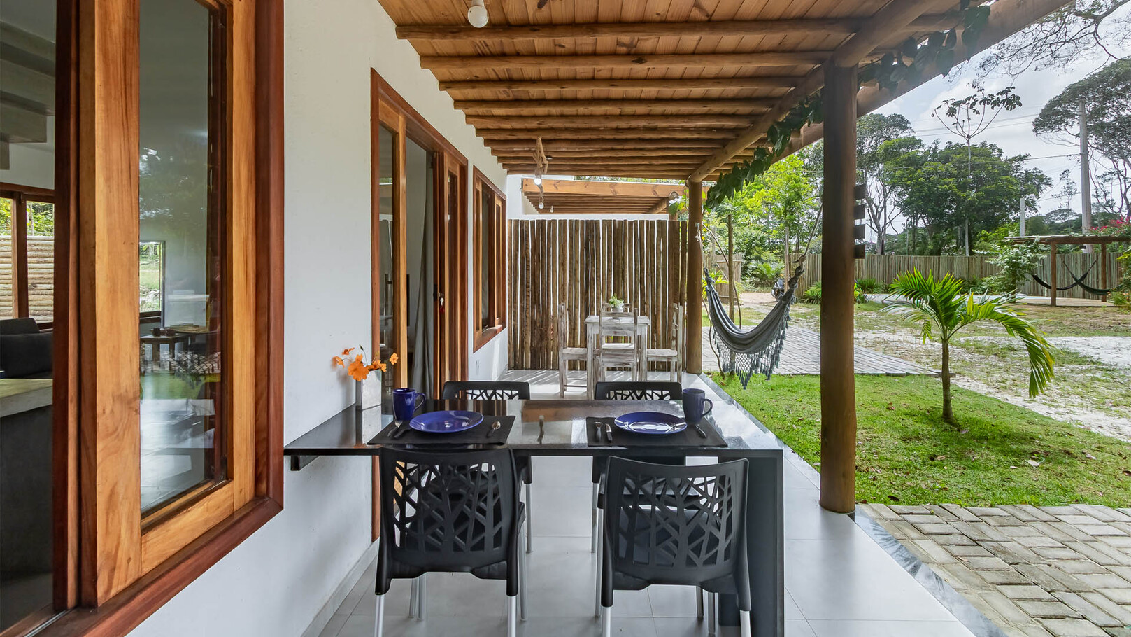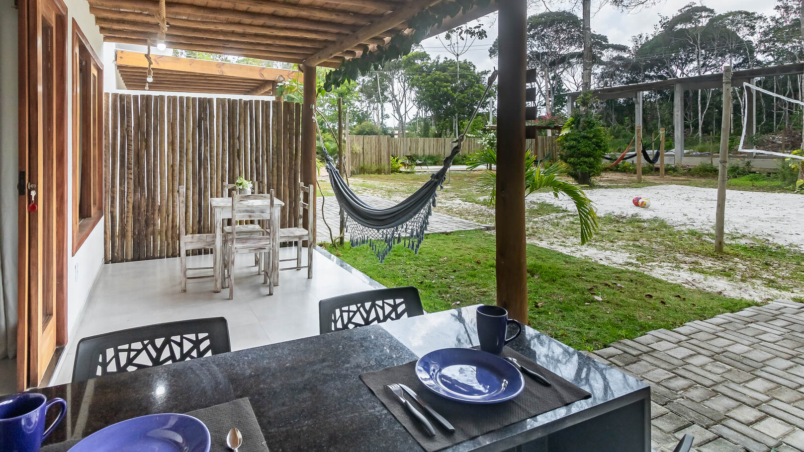 In Arraial d'Ajuda, within a closed condominium with a gatehouse, this 105 m² house accommodates up to 10 guests in a welcoming space full of leisure. There are 2 air-conditioned suites, a living room with Smart TV and sofa beds, a fully equipped kitchen, and a gourmet veranda with an exclusive barbecue area. The external area features a hot tub, a hammock area, sports courts, and a garden. Perfect for families and groups who want to enjoy the coast with comfort, safety, and fun. Book and live unforgettable days in Bahia!