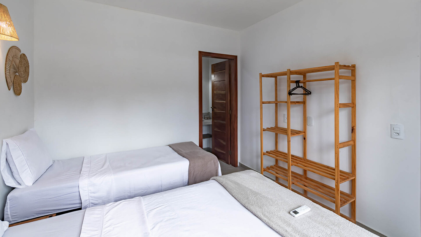 - Bedroom 1 (suite): 1 double bed, 1 bunk bed (2 people), air conditioning and private bathroom