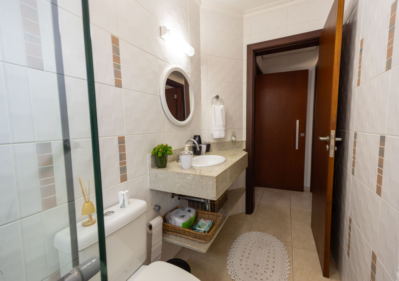 - 3 social bathrooms (two without shower enclosure and one with glass shower enclosure)