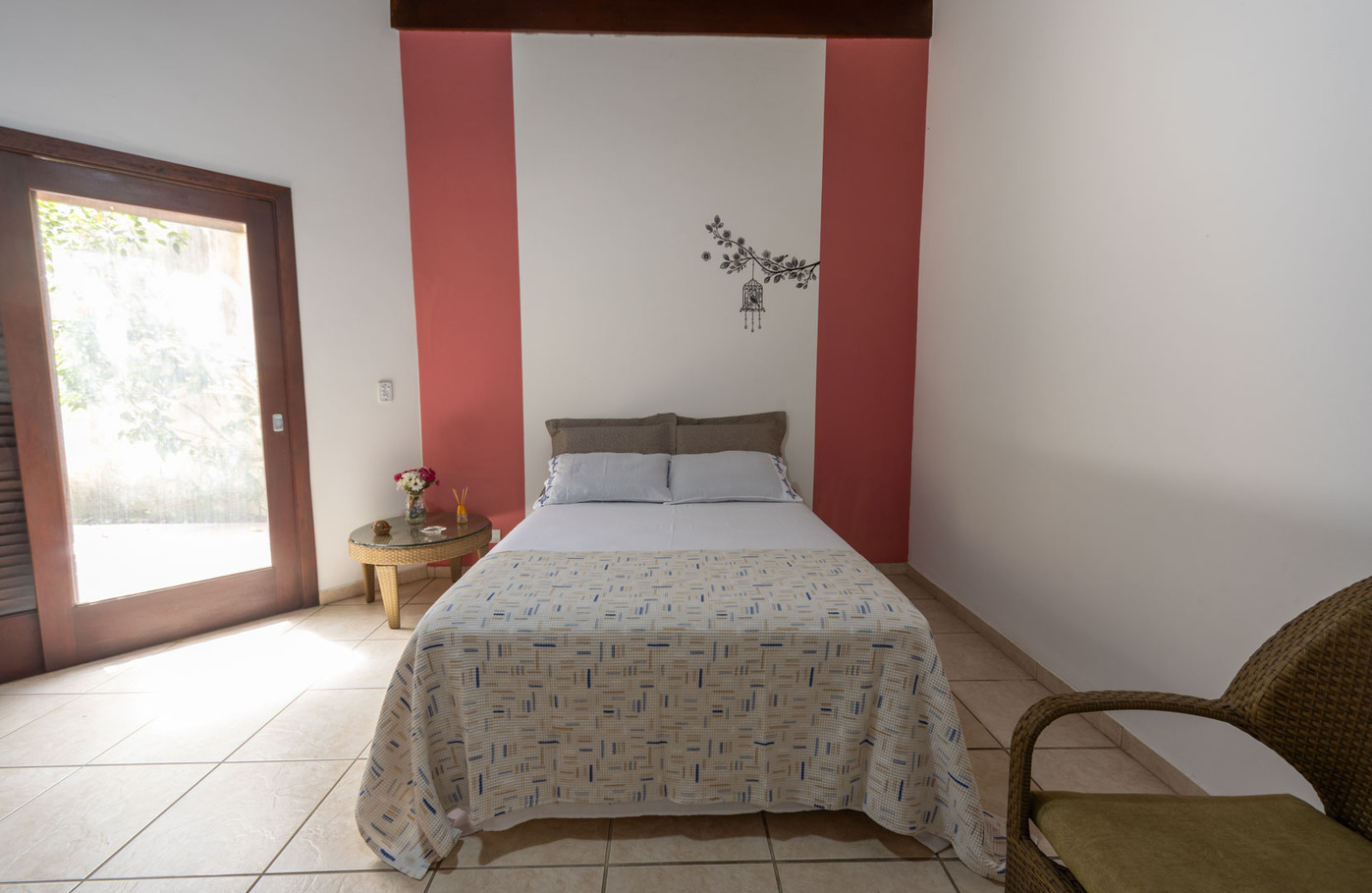 - Suite 2: double bed, wardrobe, ceiling fan, private bathroom with electric shower (no shower enclosure).
