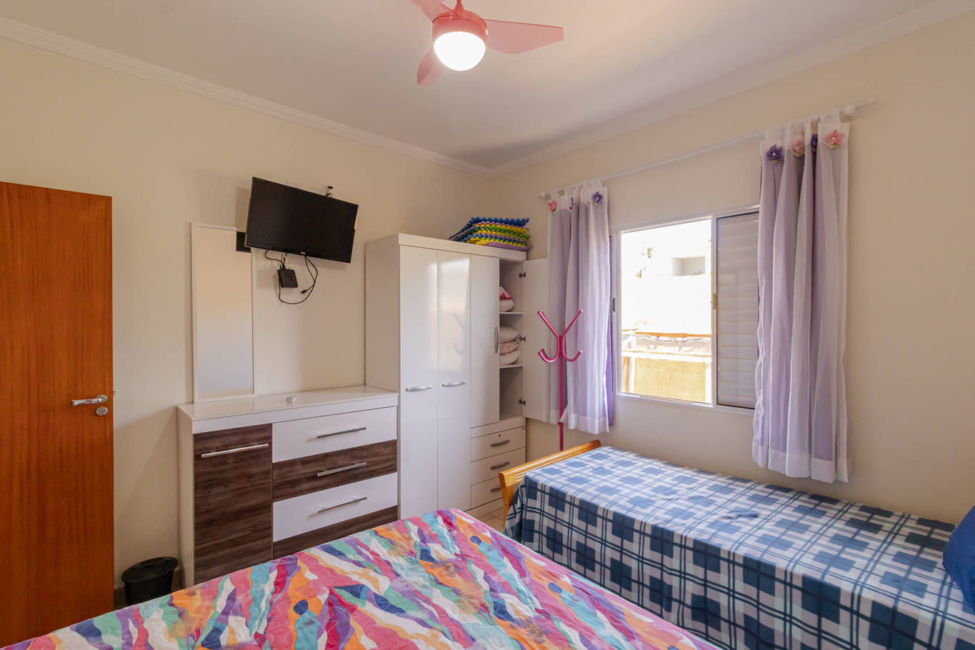 - Bedroom 3 (suite): double bed, bunk bed, wardrobe, Smart TV, fan and private bathroom with glass shower