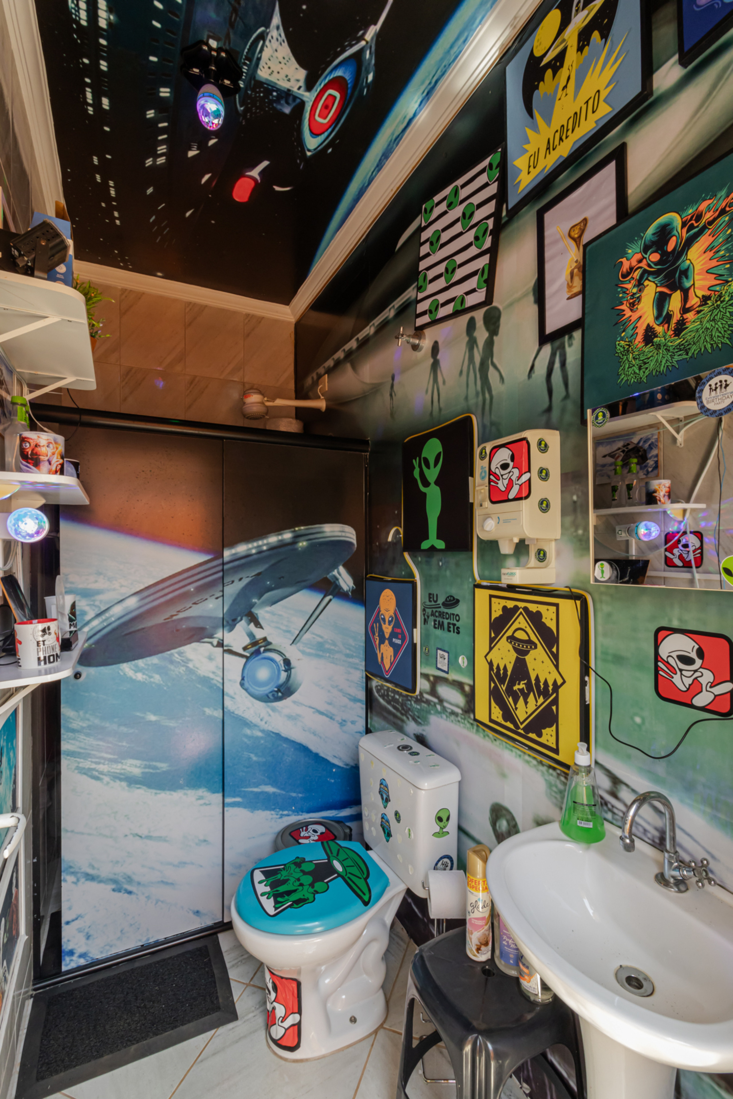 This themed country house is a true immersive experience for those seeking leisure and originality. Located in a gated community, it features 130 m², 3 suites equipped with Smart TV and ceiling fan, gourmet area with barbecue and pool with waterfall. The great differential is in the alien-themed, creative and fun decoration, which transforms your stay into something unforgettable. Book now and live this unique experience!