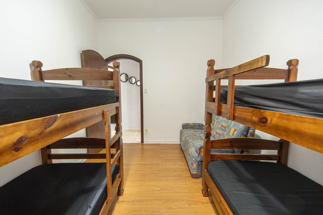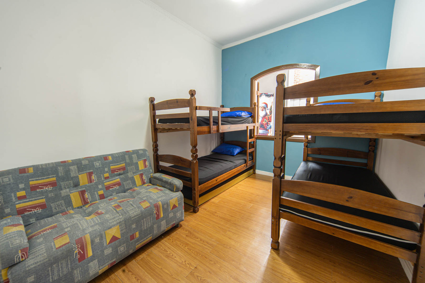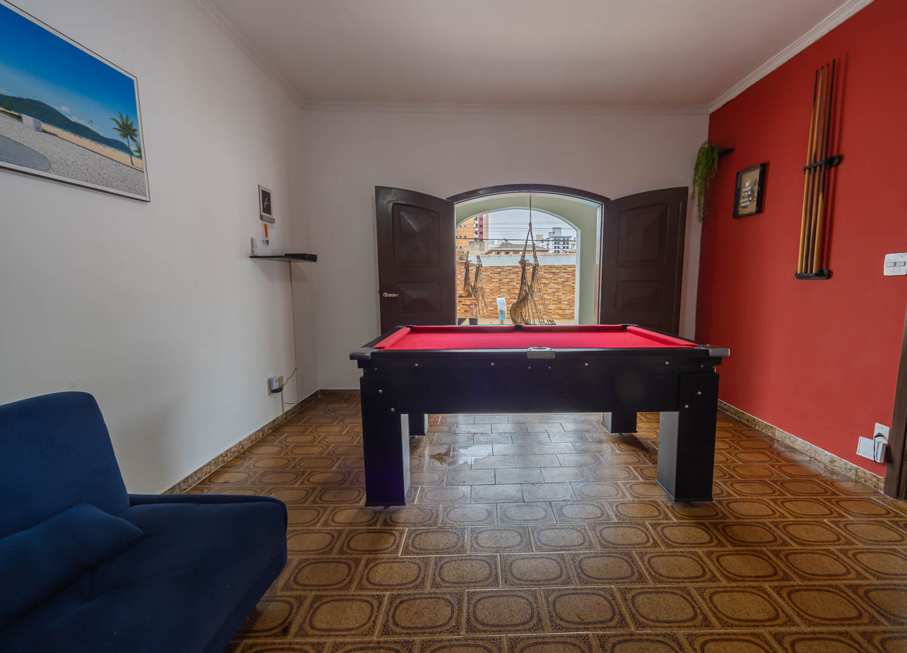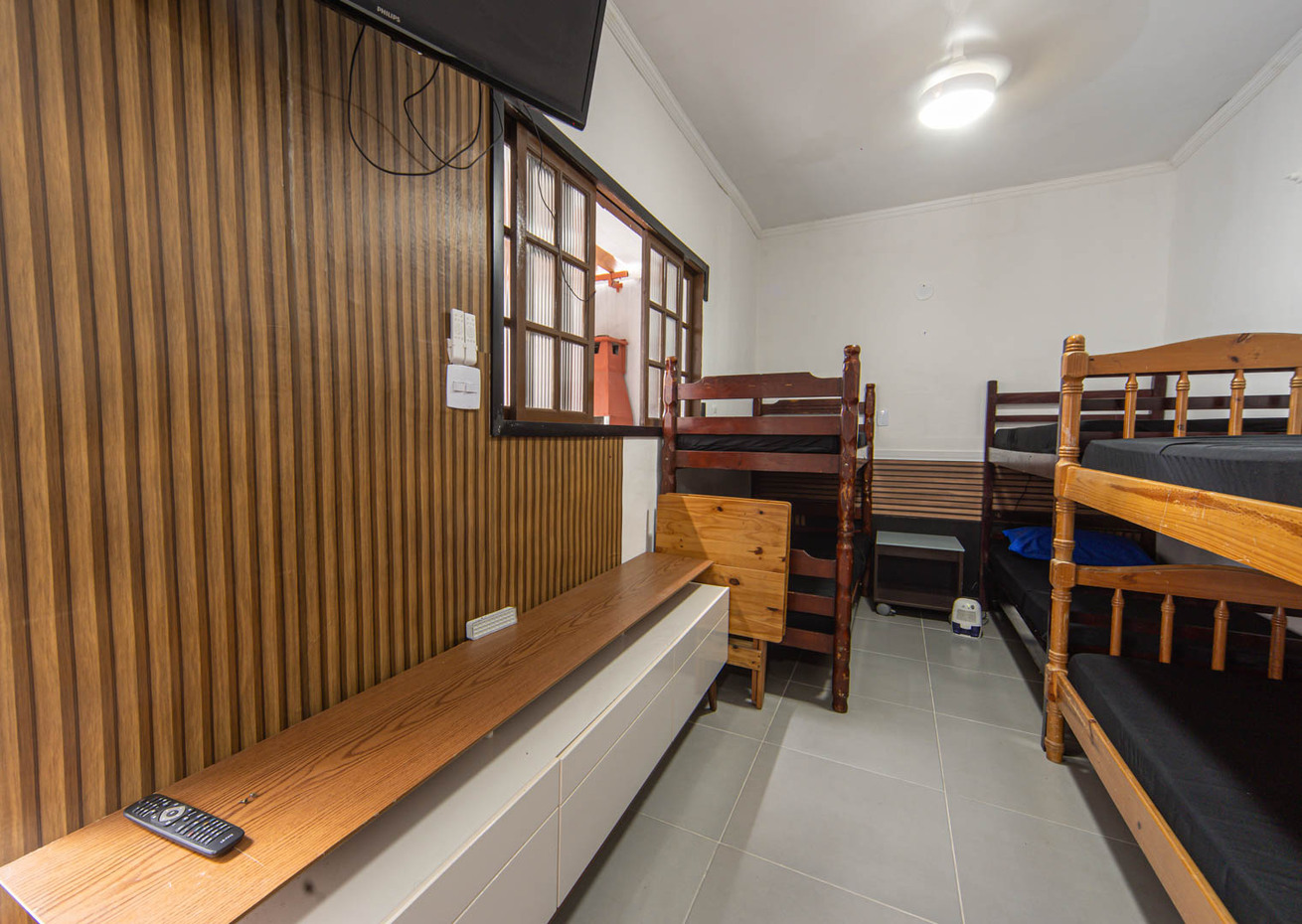 The house in Praia Grande has 4 bedrooms and has capacity for 24 people.