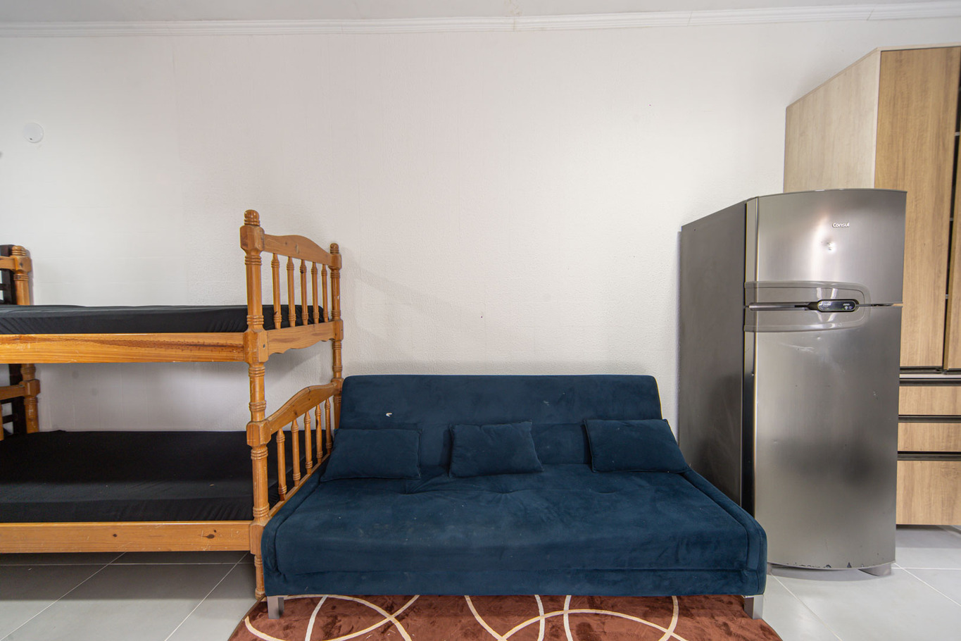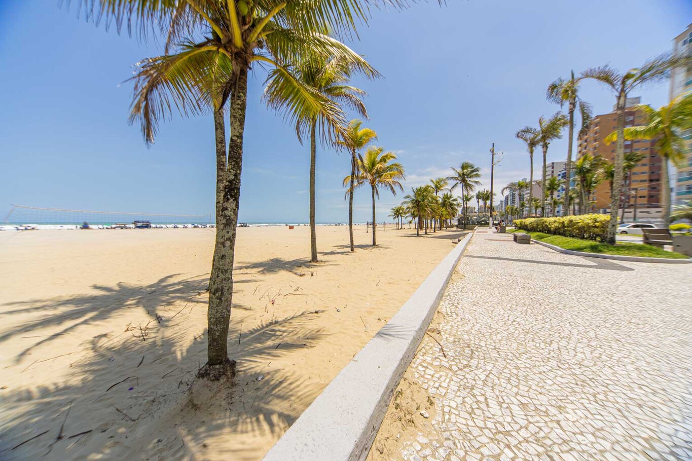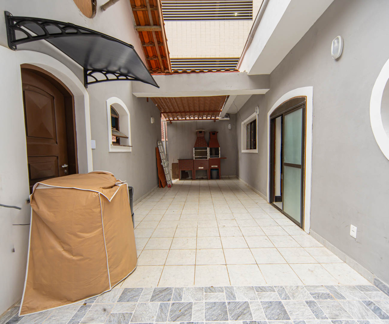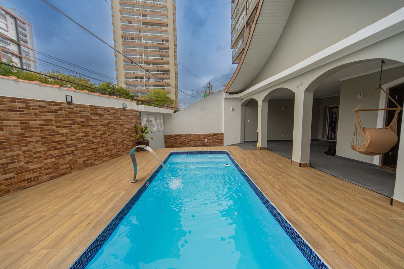 The house in Praia Grande has 4 bedrooms and has capacity for 24 people.
