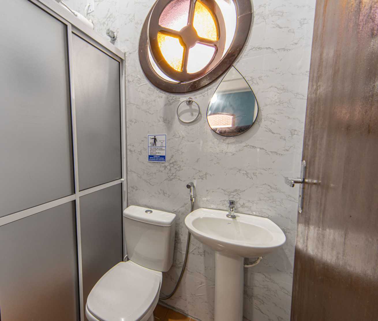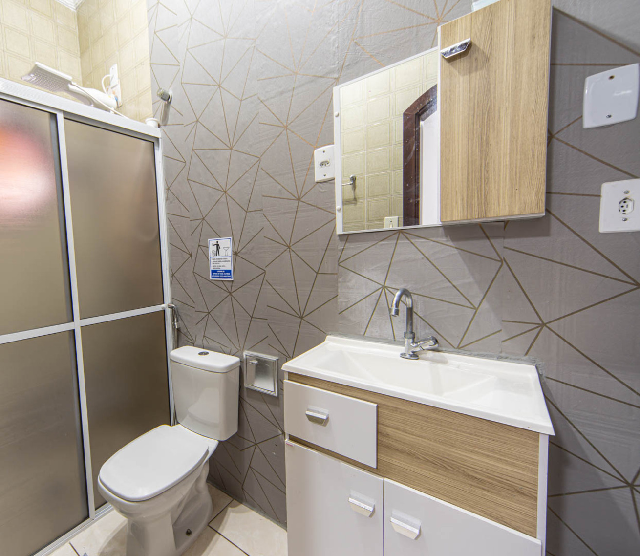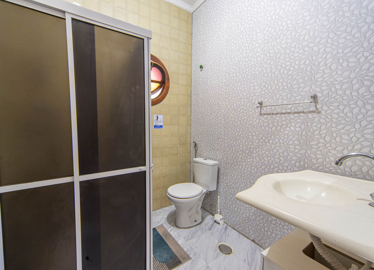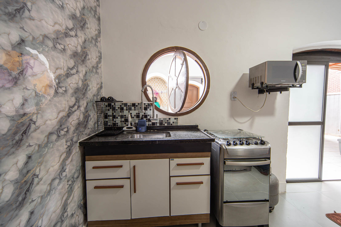 The house in Praia Grande has 4 bedrooms and has capacity for 24 people.