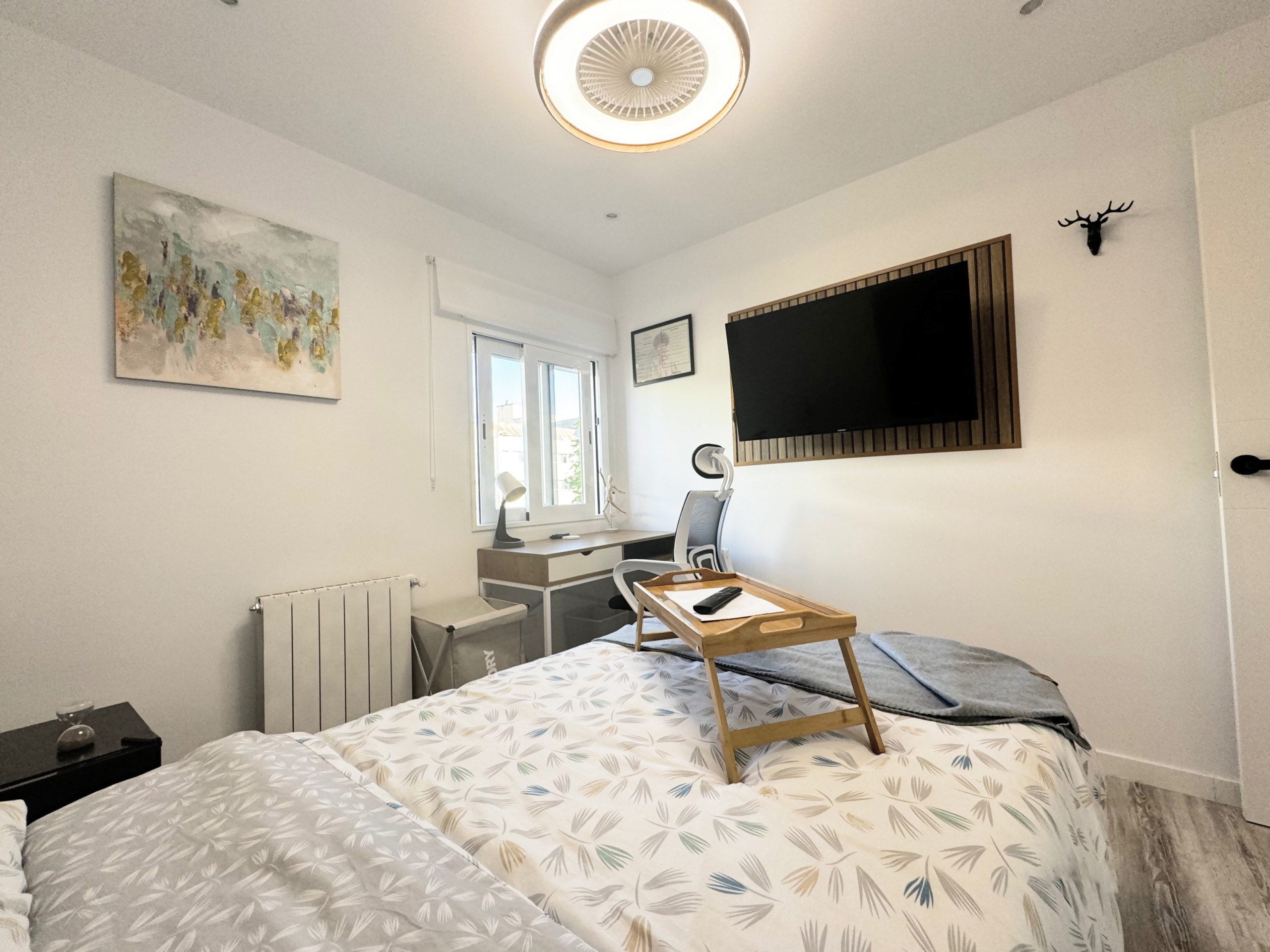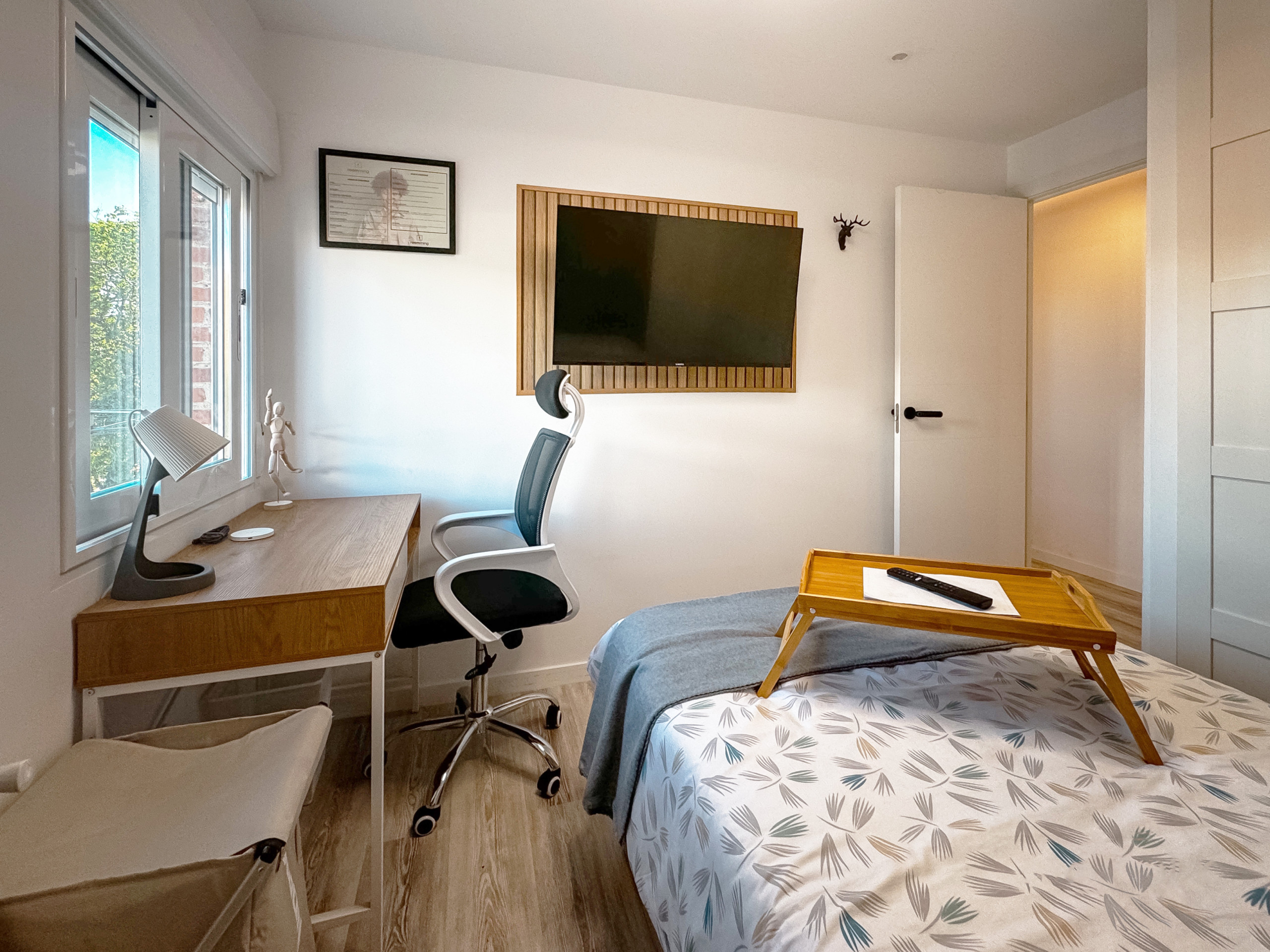 Room 2-Lima: Comfortable room, equipped with all amenities from the bed with a premium mattress, storage bed base, desk + chair, to smart TV, air conditioning, safe, iron + ironing board, wireless charger, smart lock, 2 sets of towels and sheets.