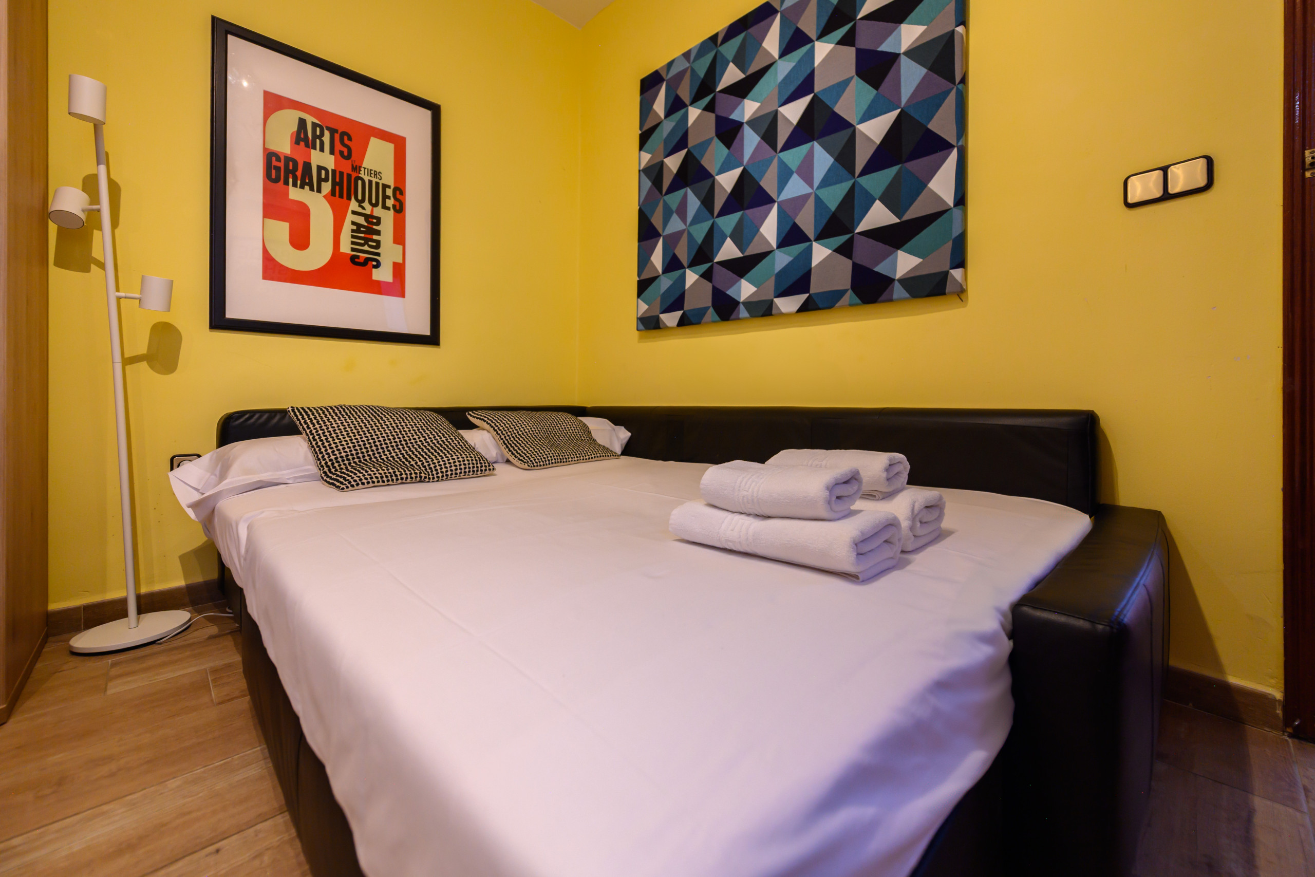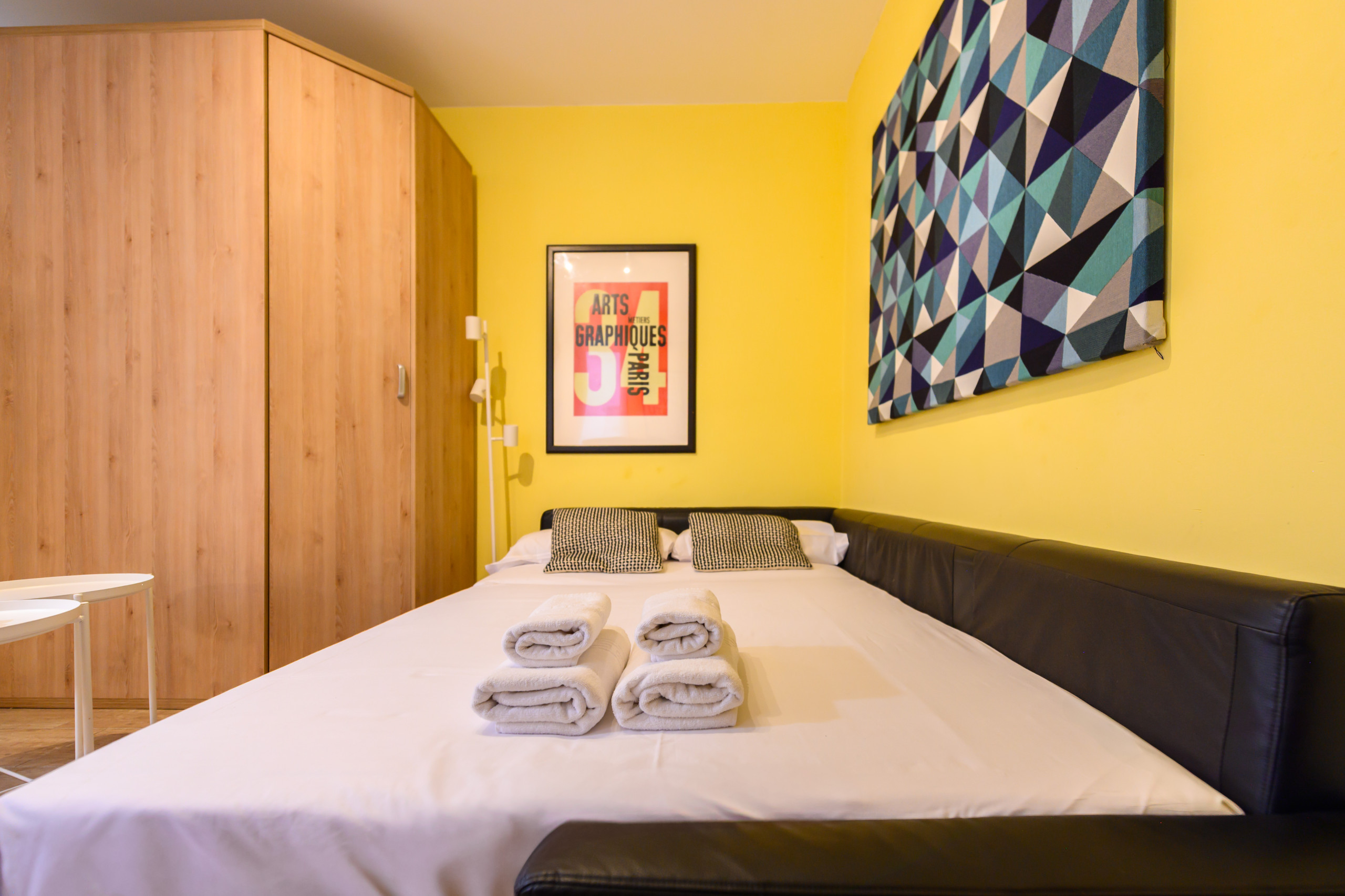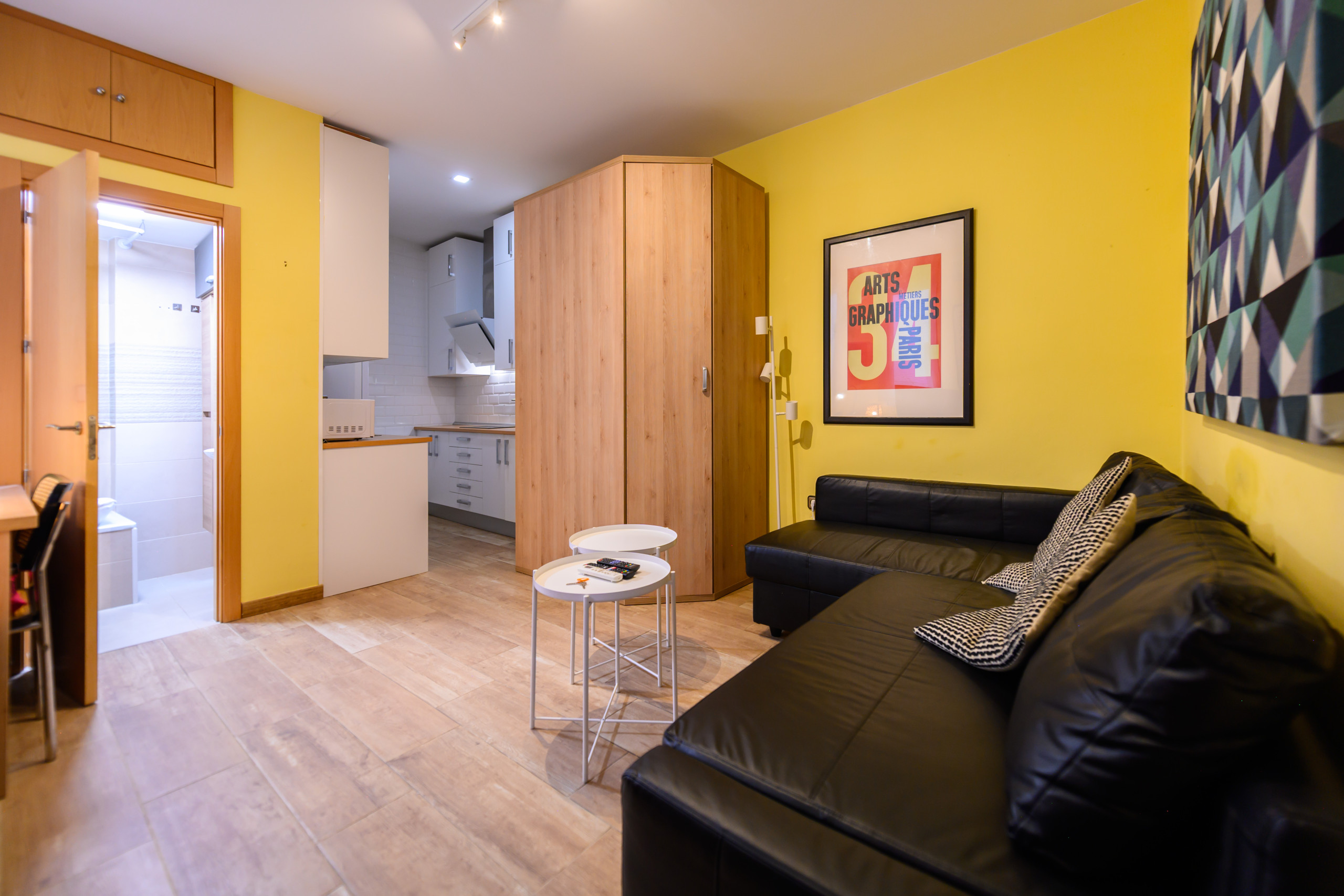 Temporary Rental Flat. This versatile dwelling has been designed to make the most of each of its spaces. The living room is the multifunctional heart of the home, as it easily transforms into a bedroom thanks to its sofa bed; during the day, it functions as a comfortable living room and, at night, can provide resting space.