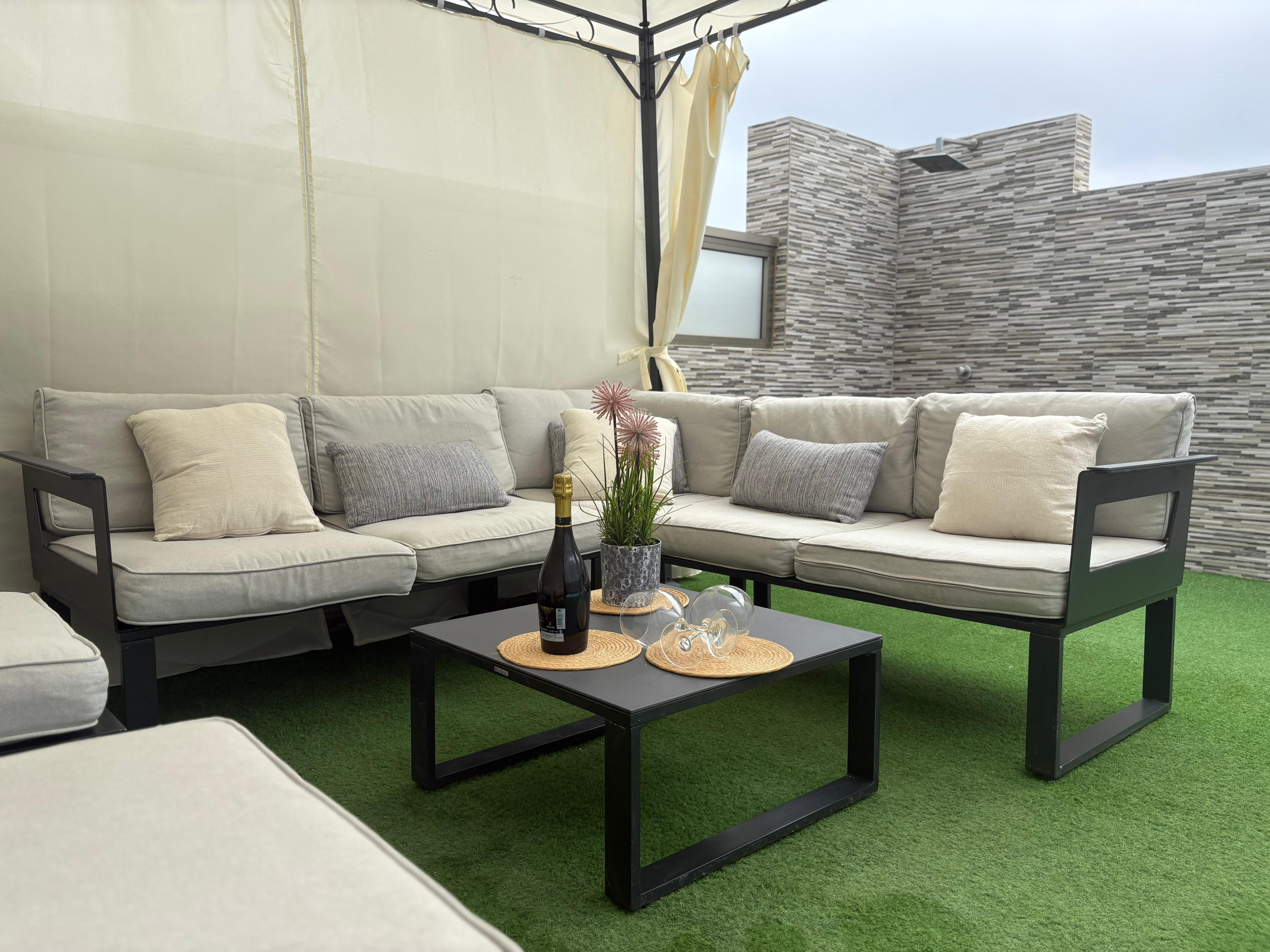 The property has three spacious bedrooms, a cosy living room and an independent kitchen with everything necessary to enjoy a comfortable stay. Outside, you will find a spectacular 87 m² terrace, garden and private pool with jacuzzi area and waterfall, perfect spaces to relax under the Canarian sun and share moments with family or friends.