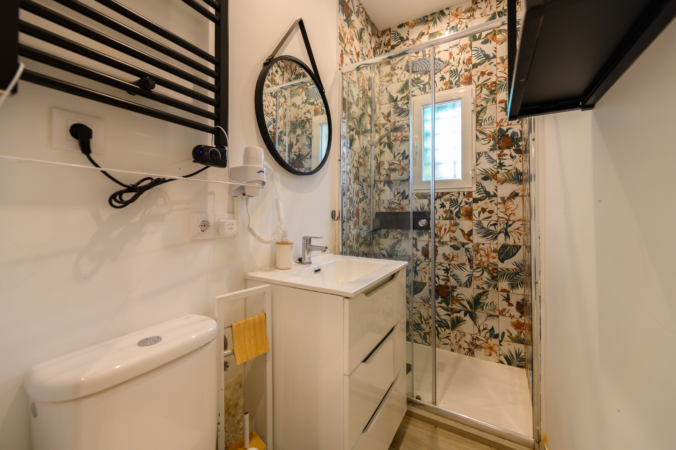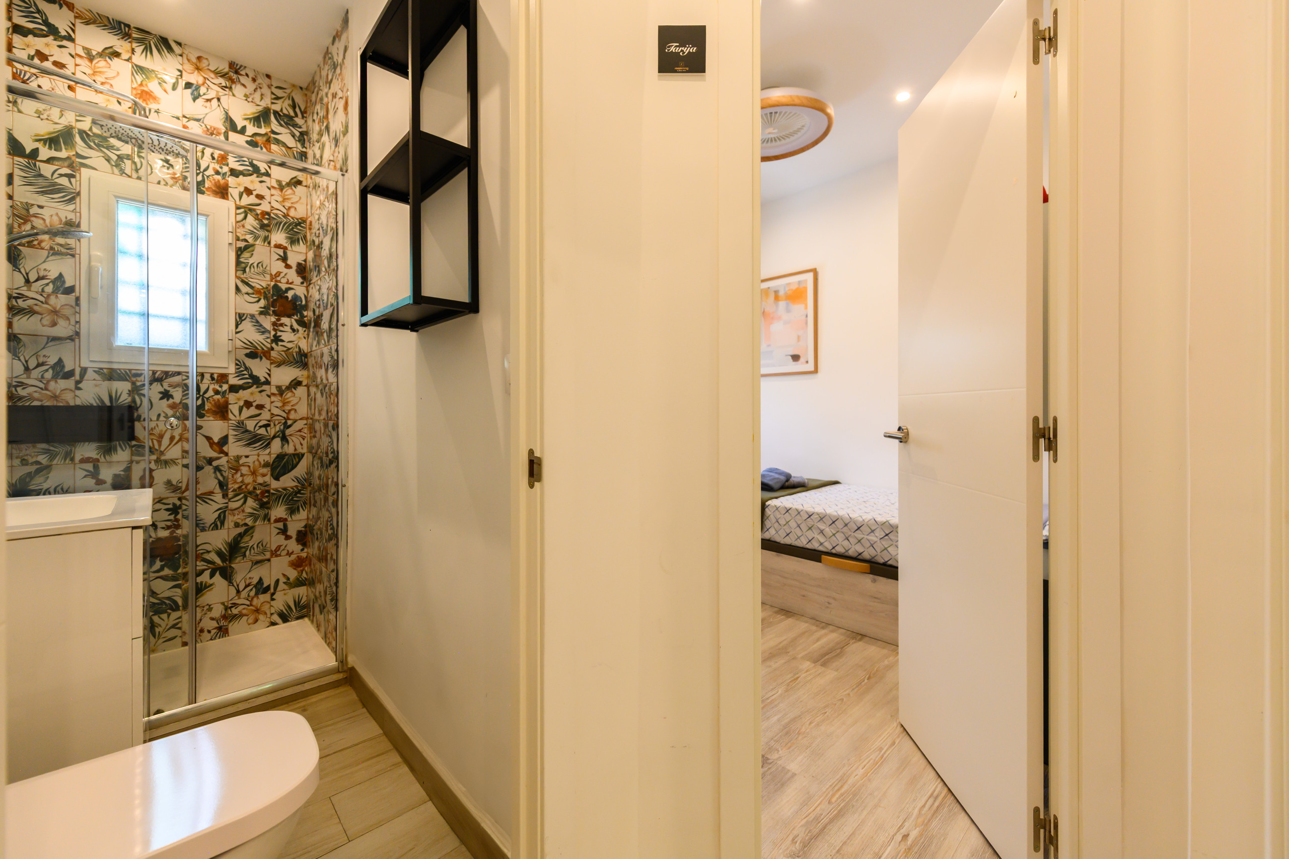 Habitación 4–La Paz: Habitación con vistas, dentro de la vivienda Hogar de Belén, alquiler Temporal Situada en la primera planta, cuenta con todas las comodidades que todo estudiante puede demandar. Desde la cama con un colchón premium, canapé con gran almacenaje, escritorio + silla, hasta smart TV, climatización, caja fuerte, plancha+tabla, cargador inalámbrico, cerradura inteligente, 2 juegos de toallas y sábanas.