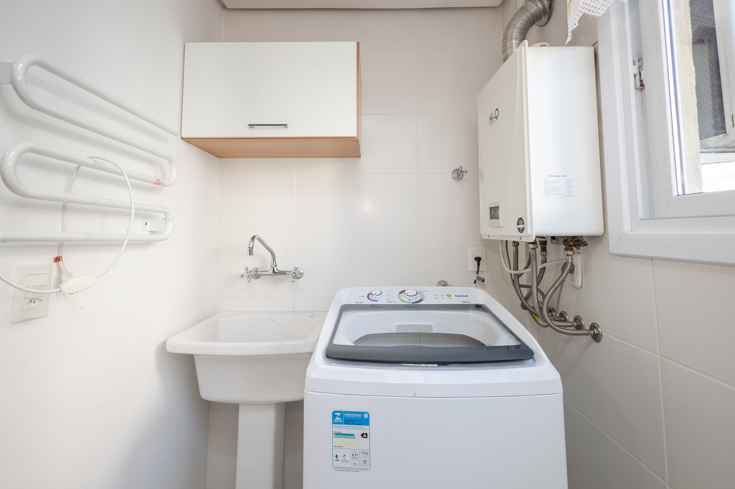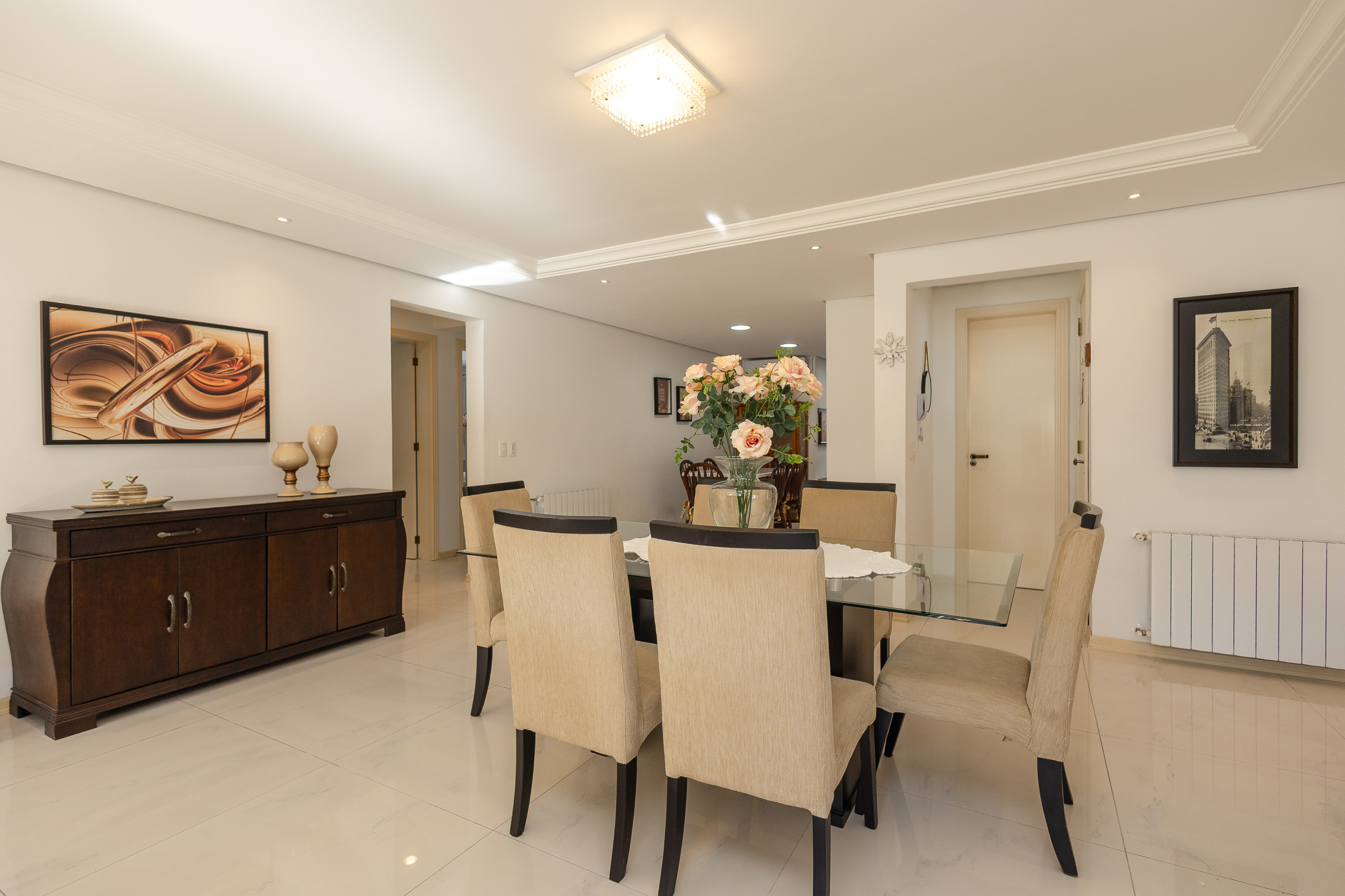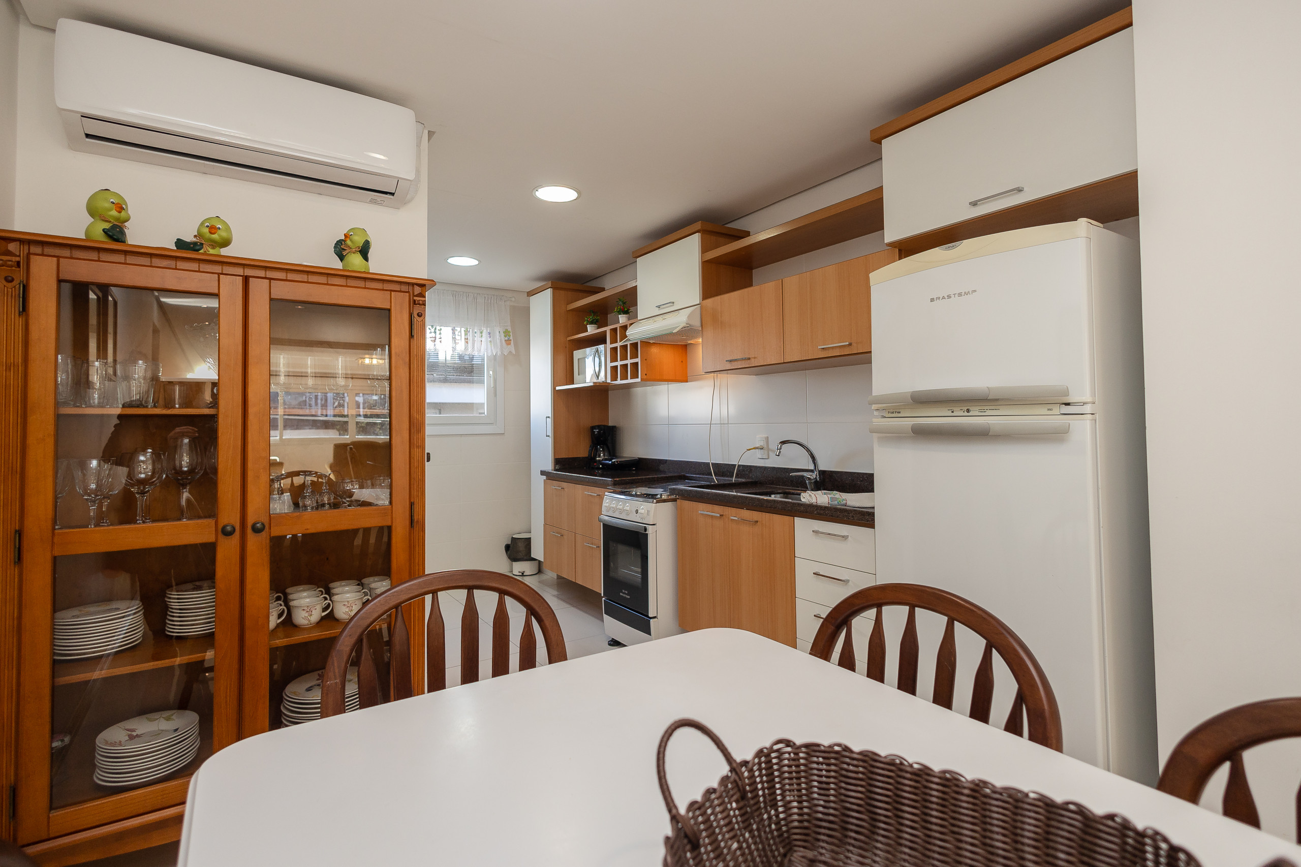 Acogedor apartamento amueblado con 3 dormitorios (todos con split frío/calor), siendo una suite más baño social completo, amplio salón climatizado con comedor y estar integrados a la cocina, área de servicio con lavadora de ropa, cocina completa, aseo y una plaza de garaje. Ubicado a 3 cuadras de la Calle Cubierta, le permitirá disfrutar lo mejor de Gramado dejando el coche en el garaje, con diversos bares, tiendas, mercados y restaurantes a pocos metros del inmueble.