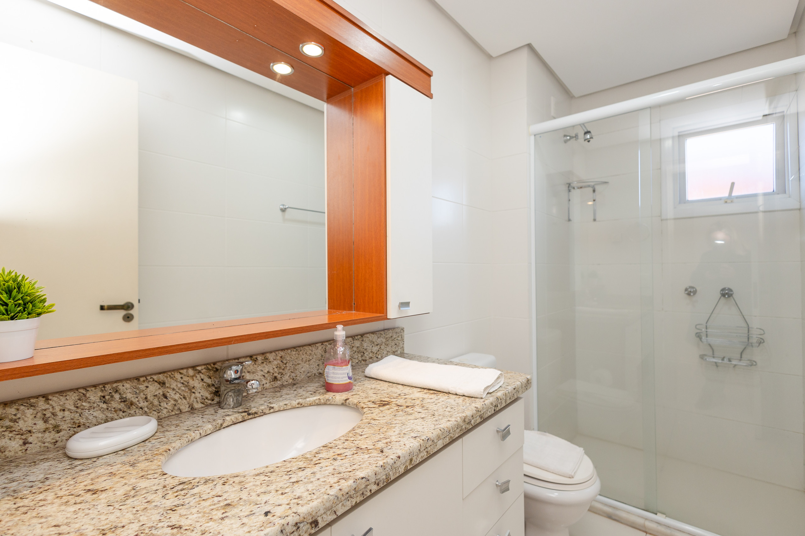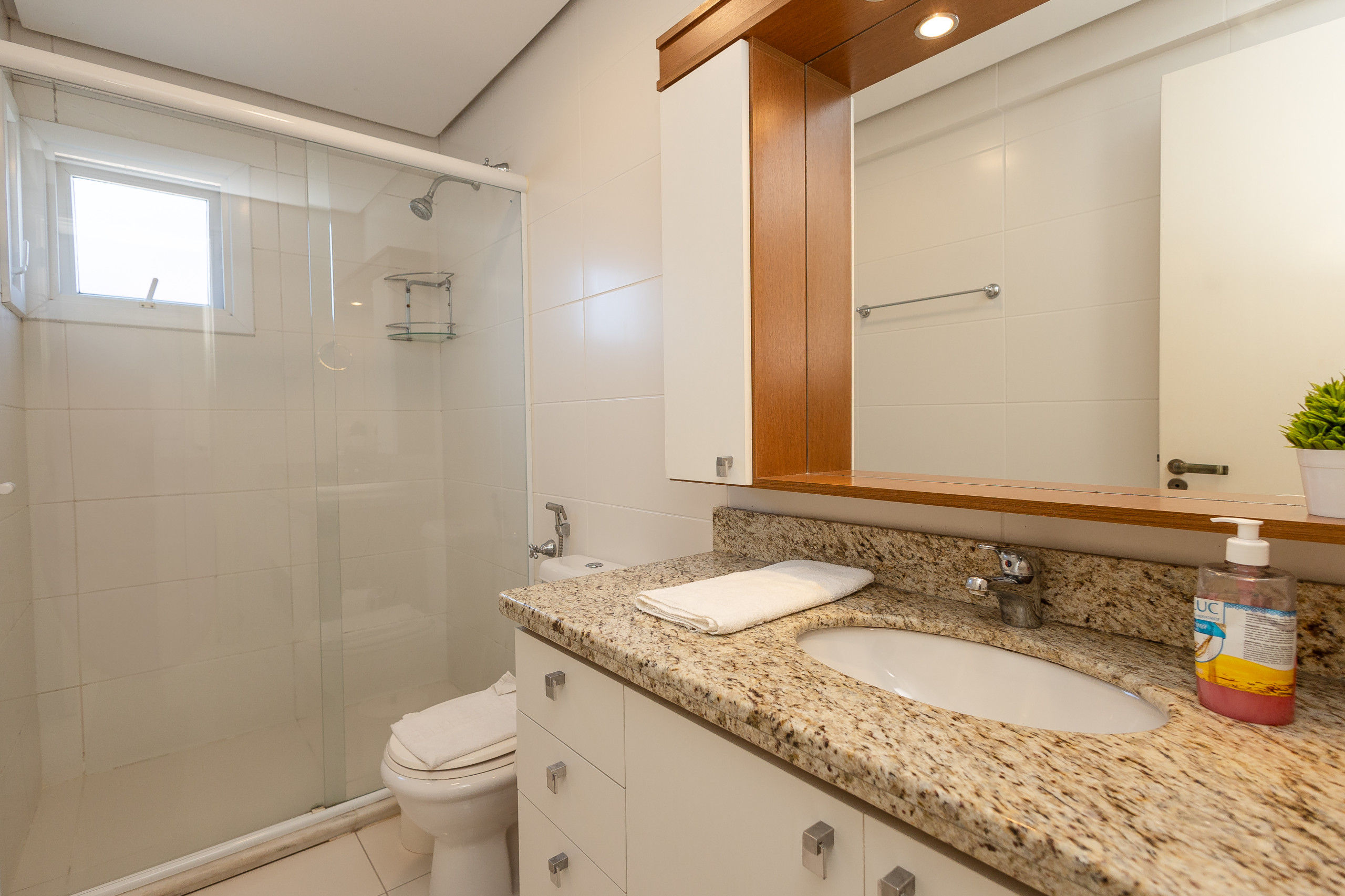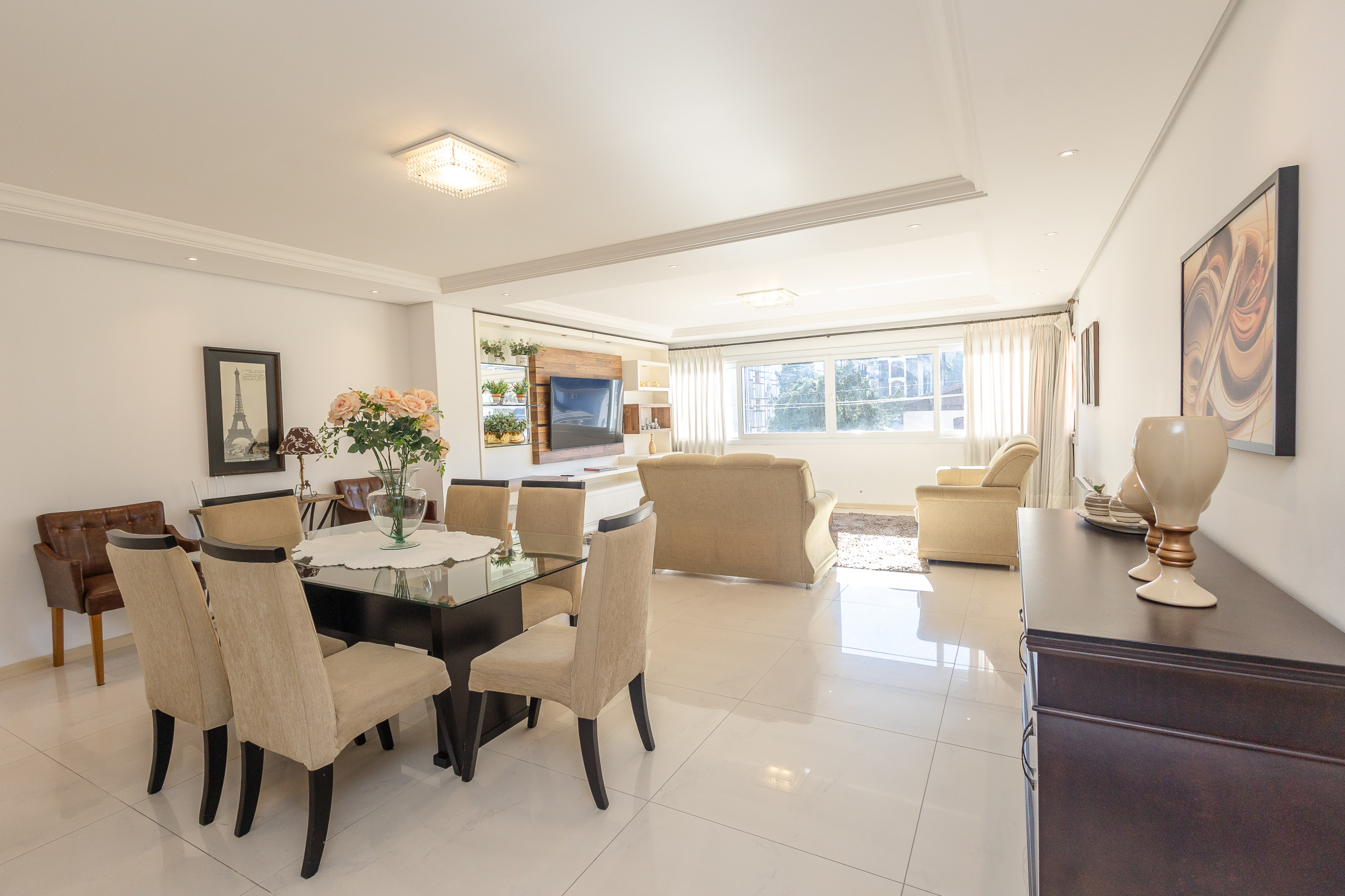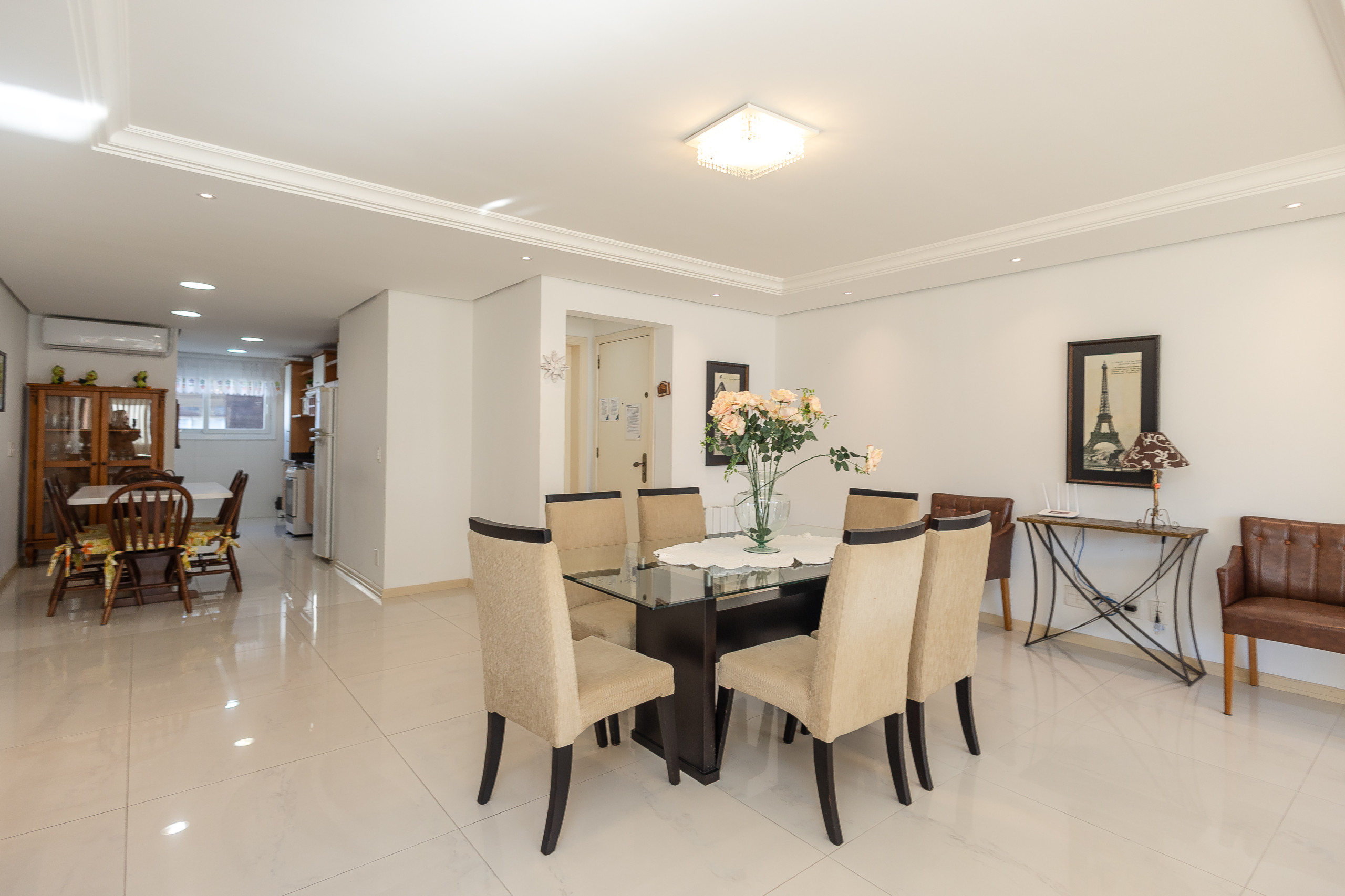 Acogedor apartamento amueblado con 3 dormitorios (todos con split frío/calor), siendo una suite más baño social completo, amplio salón climatizado con comedor y estar integrados a la cocina, área de servicio con lavadora de ropa, cocina completa, aseo y una plaza de garaje. Ubicado a 3 cuadras de la Calle Cubierta, le permitirá disfrutar lo mejor de Gramado dejando el coche en el garaje, con diversos bares, tiendas, mercados y restaurantes a pocos metros del inmueble.