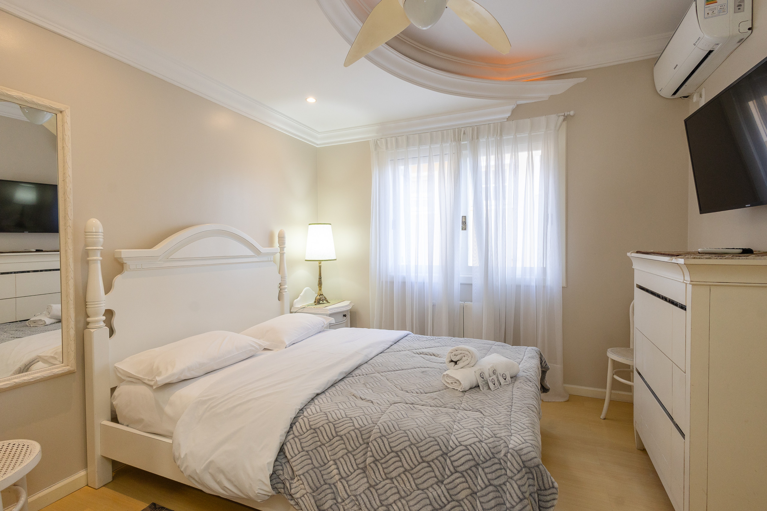 Apartamento cómodo, muy bien amueblado y con ropa de cama y baño de excelente calidad. Ofrecemos wifi, plaza de garaje. Con un área de 130 m2, el apartamento presenta en el primer nivel una sala de estar con balcón, cocina completa y una suite. En la planta superior hay tres suites, y sala de estar íntima con sofá cama y cama individual. Todas las habitaciones cuentan con aire acondicionado caliente y frío. ¡Te va a encantar!