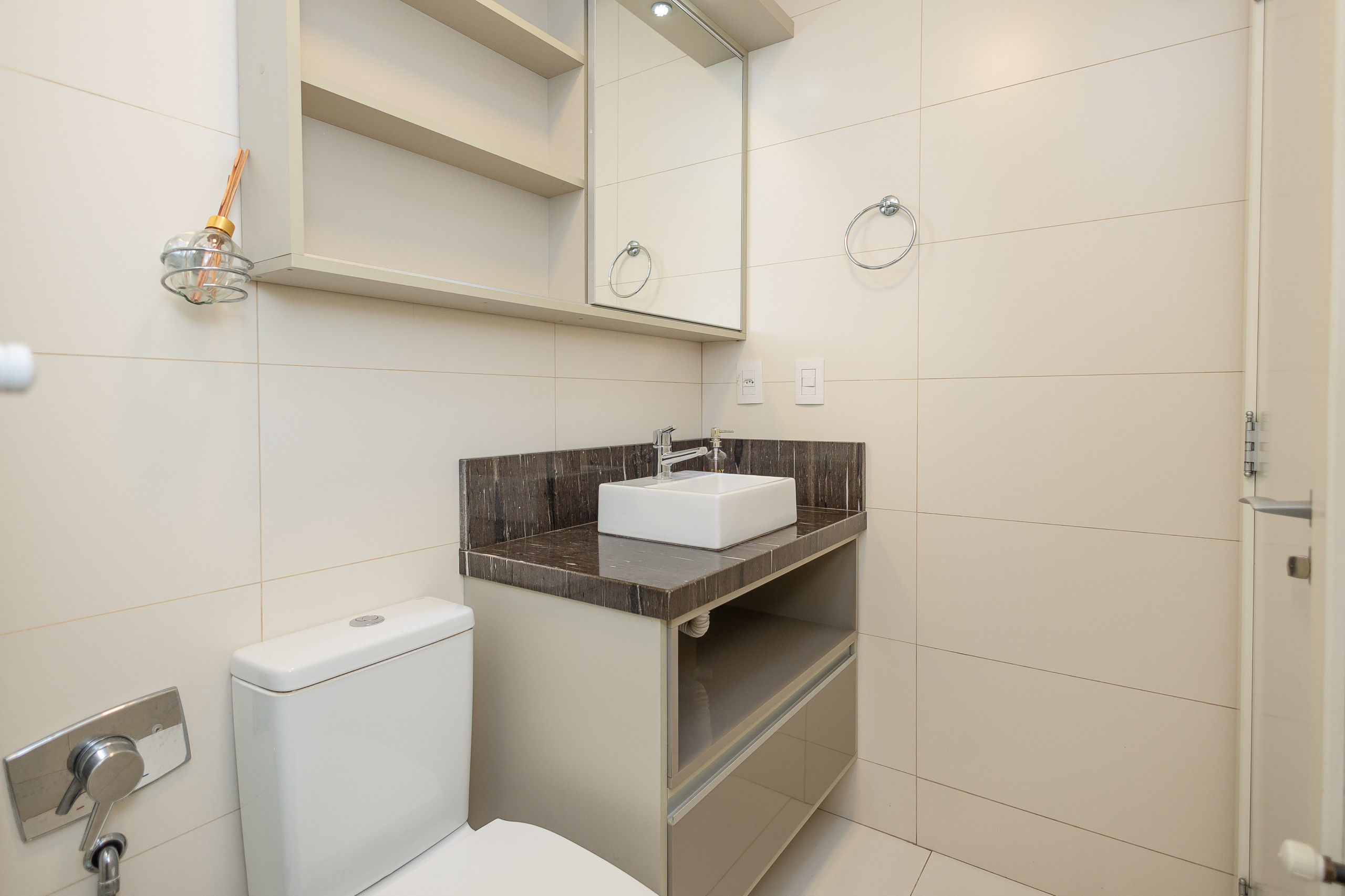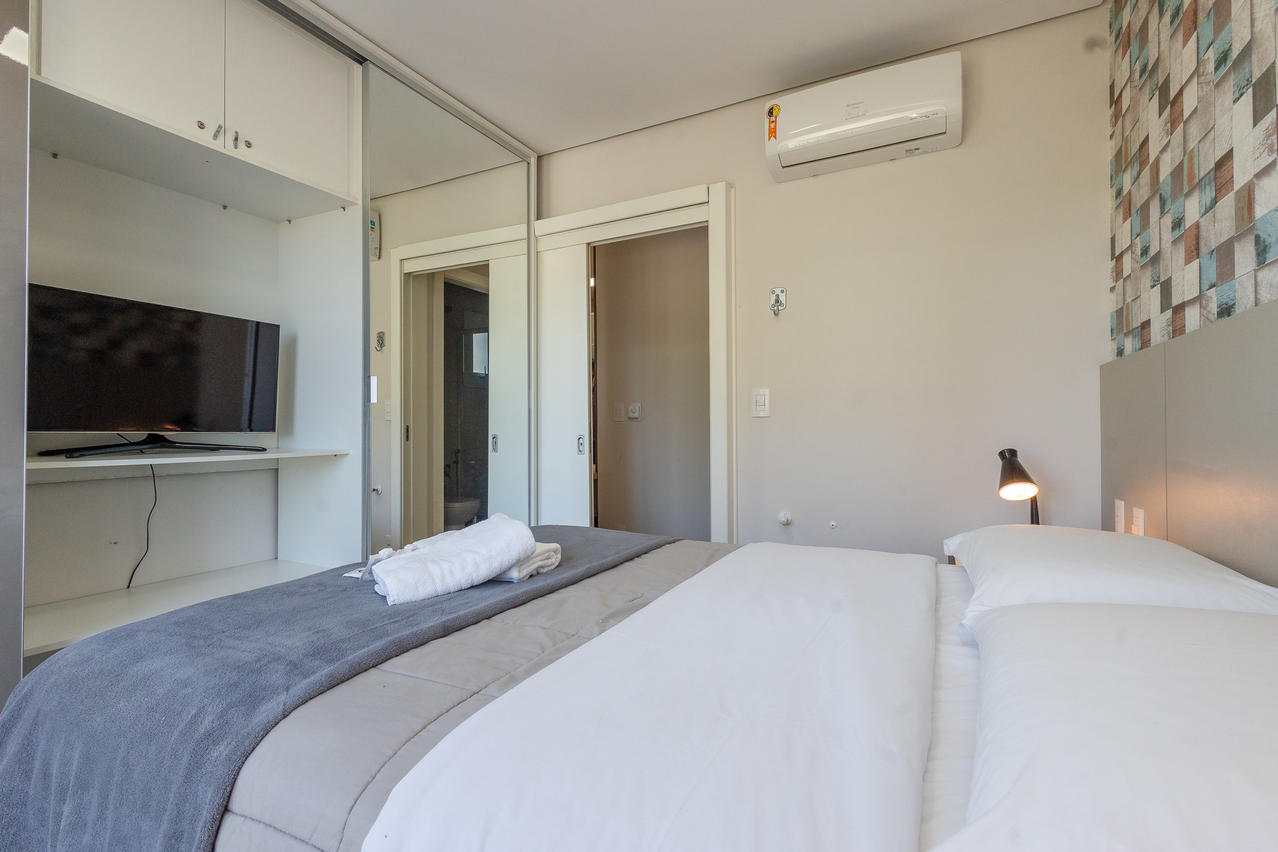 Moderno apartamento de 1 dormitorio, en el centro de Gramado, a 400m de la Rua Coberta! Cuenta con una amplia sala de estar con dos ambientes (estar y comedor), cocina equipada, barbacoa, 2 smart TV, internet de alta velocidad, baño social completo, balcón, garaje, todos los ambientes climatizados por split frío/calor y ropa de cama, mesa y baño completa. ¡Aproveche todo lo que la ciudad ofrece sin necesidad de usar carro! Disfrute de los restaurantes, bares, tiendas y paseos por el centro en pequeños paseos.