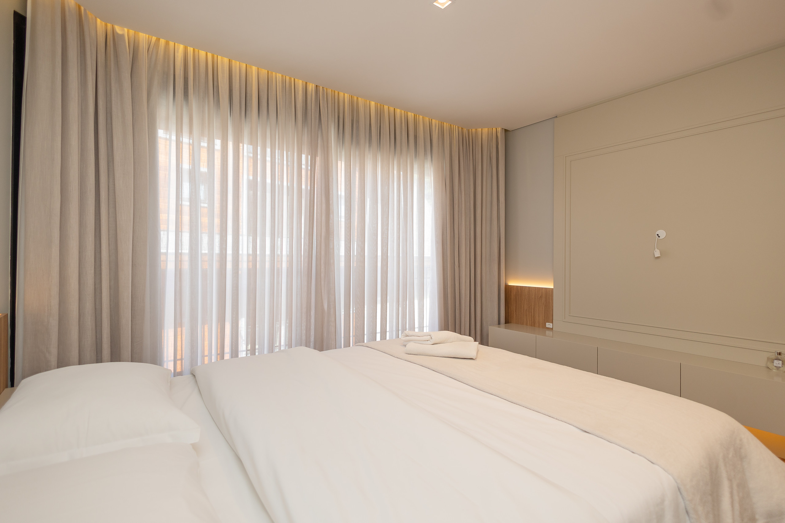 En el área íntima encontramos dos suites, cada una con split frío/calor, persianas blackout y cortinas que aportan calidez. Una de las suites cuenta con cama queen y la otra suite cuenta con una cama de matrimonio. Cada suite también cuenta con un colchón suelto, ¡ideal para la chiquillada!