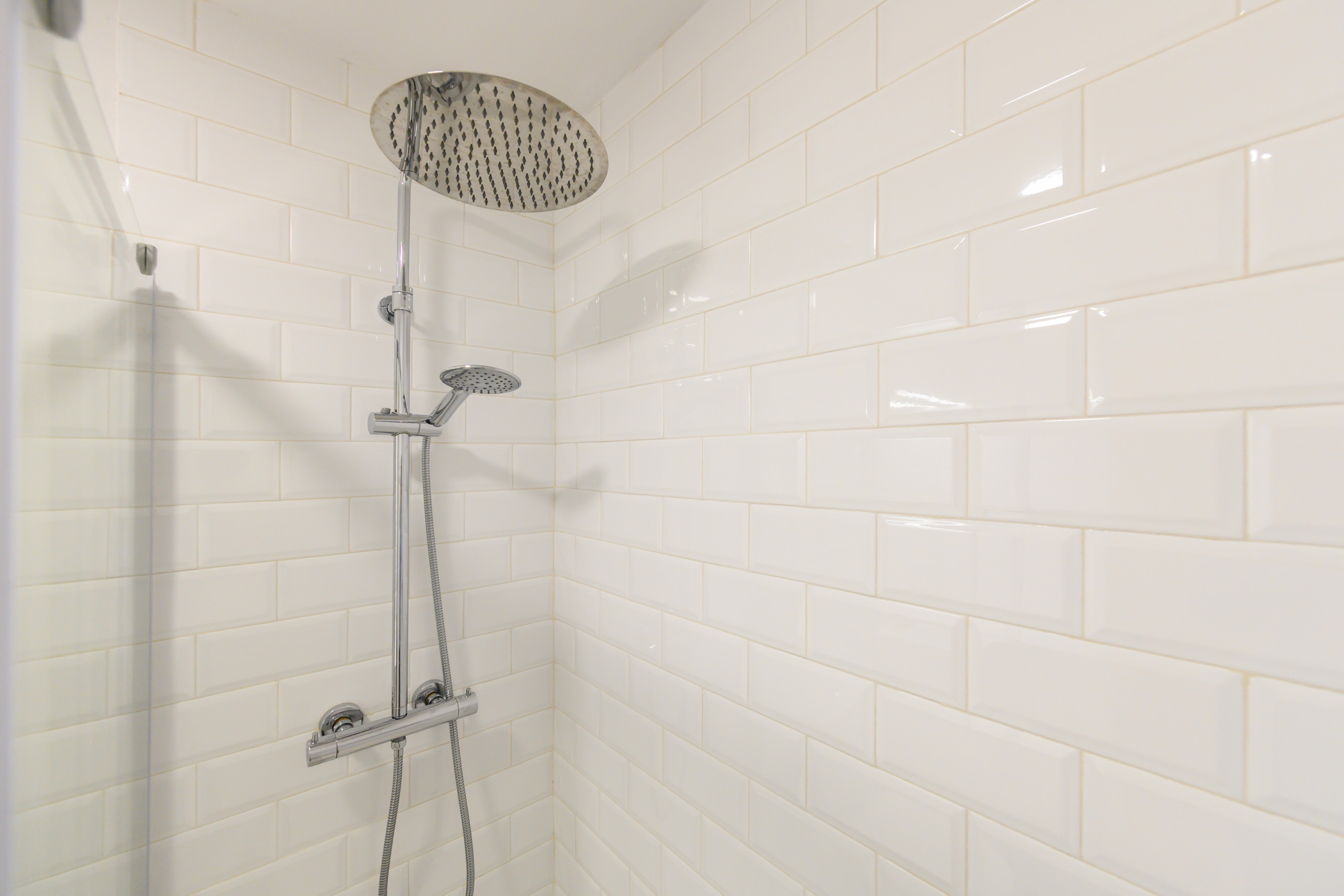 • Baño completo con ducha y espejo.