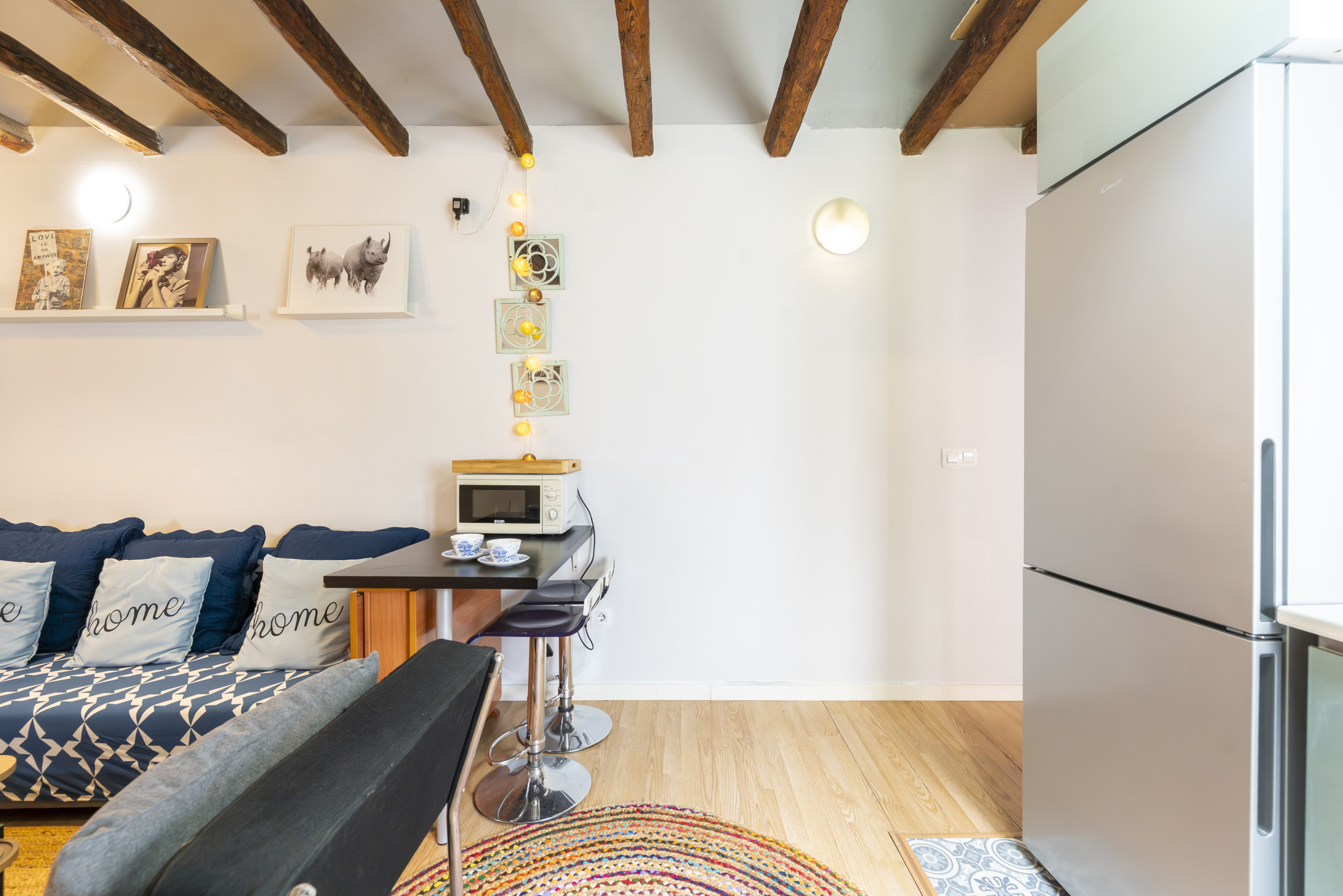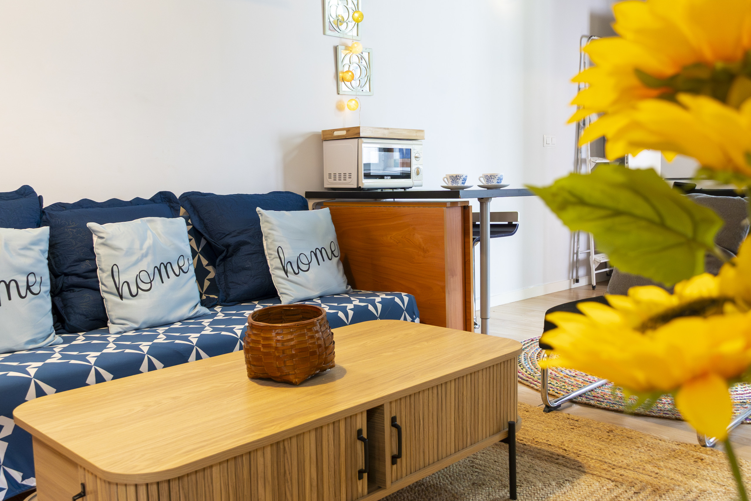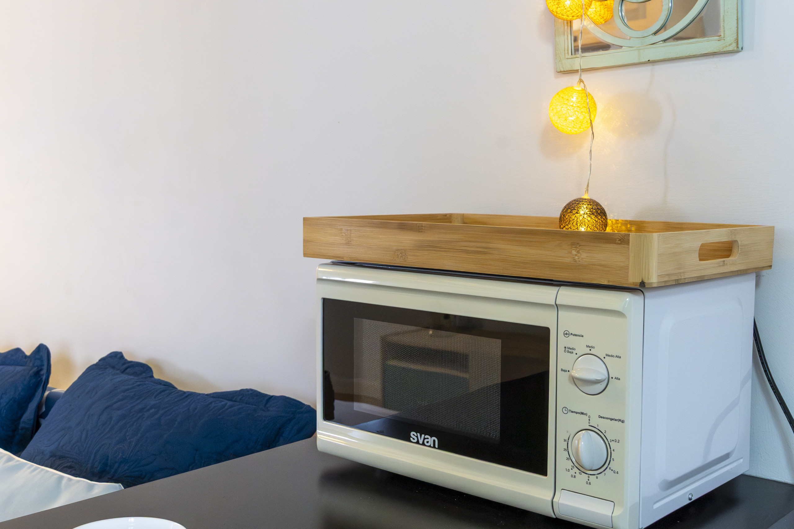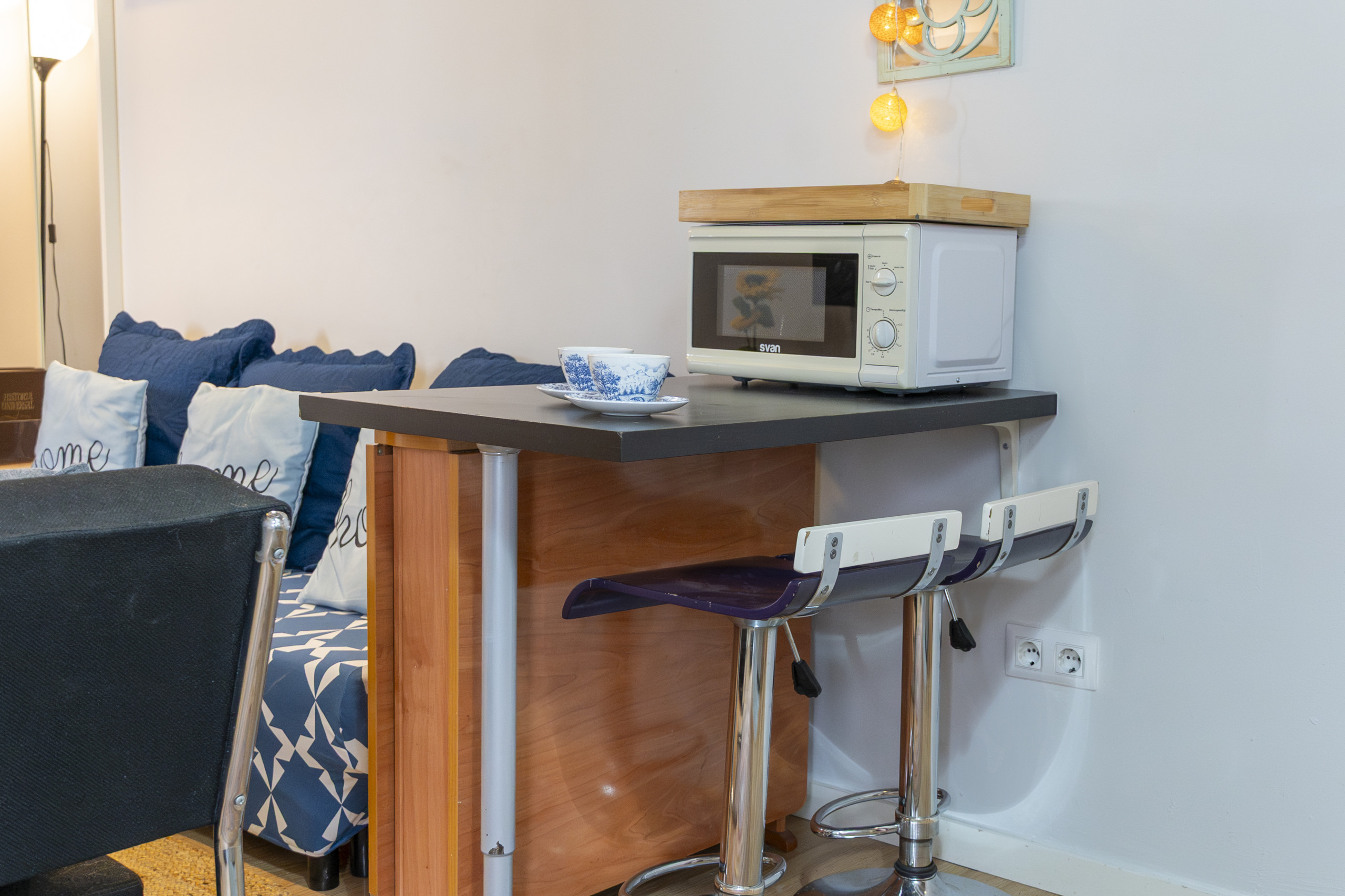 El corazón de este piso es su salón-comedor, con una sofá cama doble para invitados y una mesa en para desayunar o trabajar, la cocina abierta, creando un ambiente acogedor. Este espacio ha sido diseñado para ofrecer un área perfecta tanto para el descanso como para compartir momentos con familiares y amigos. La cocina está completamente equipada con electrodomésticos y los utensilios esenciales, brindando todo lo necesario para preparar desde una cena sencilla hasta un menú más elaborado.