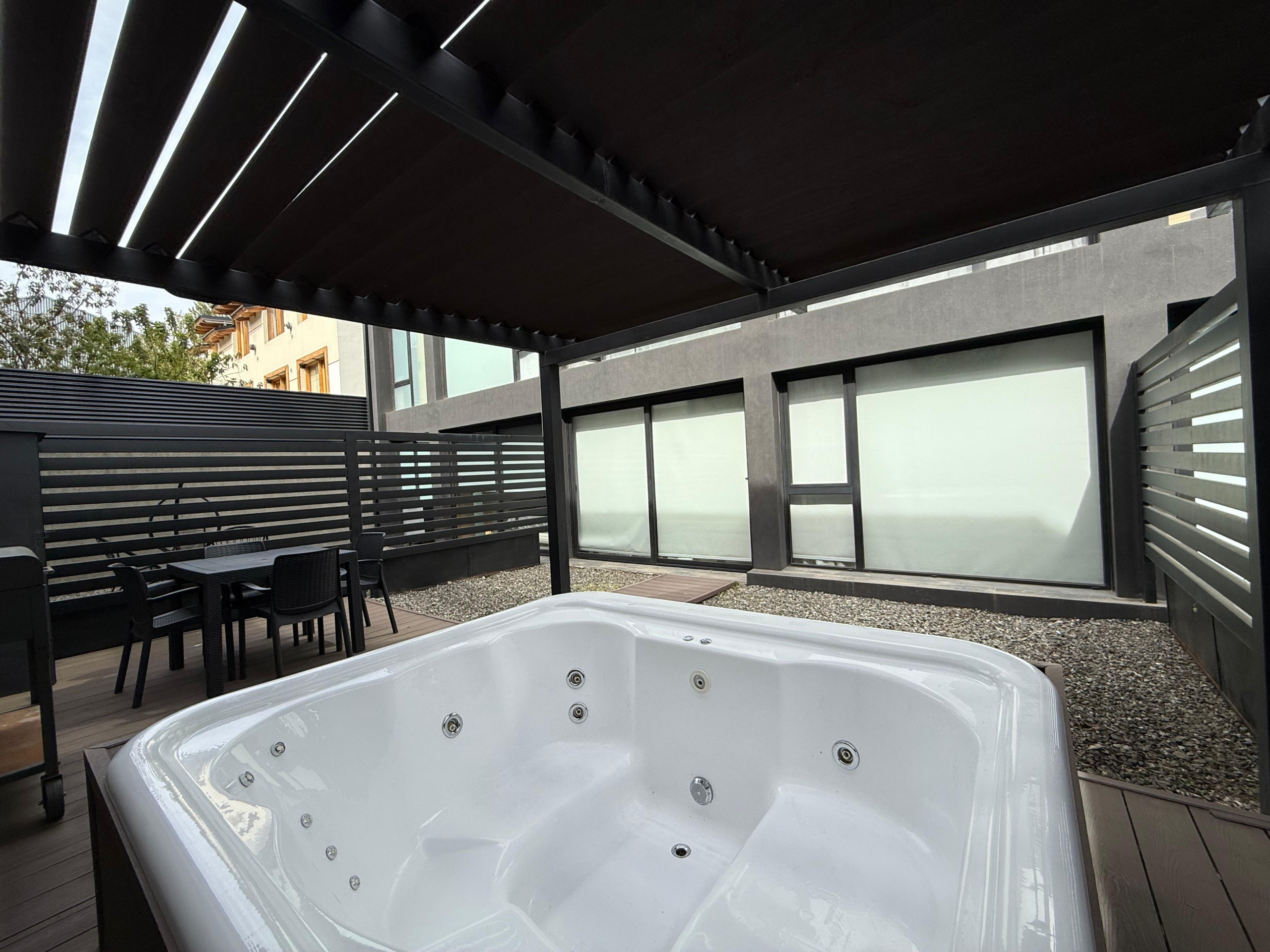 Los espacios exteriores son un verdadero punto fuerte, con un jardin de 40 metros cuadrados equipado con muebles de jardín, una parrilla y un jacuzzi, perfecto para disfrutar de momentos al aire libre. La ubicación es privilegiada, se encuentra sobre la avenida principal, a solo 500 metros de la costa del Lago Lácar y cerca de restaurantes, cafeterías y supermercados.