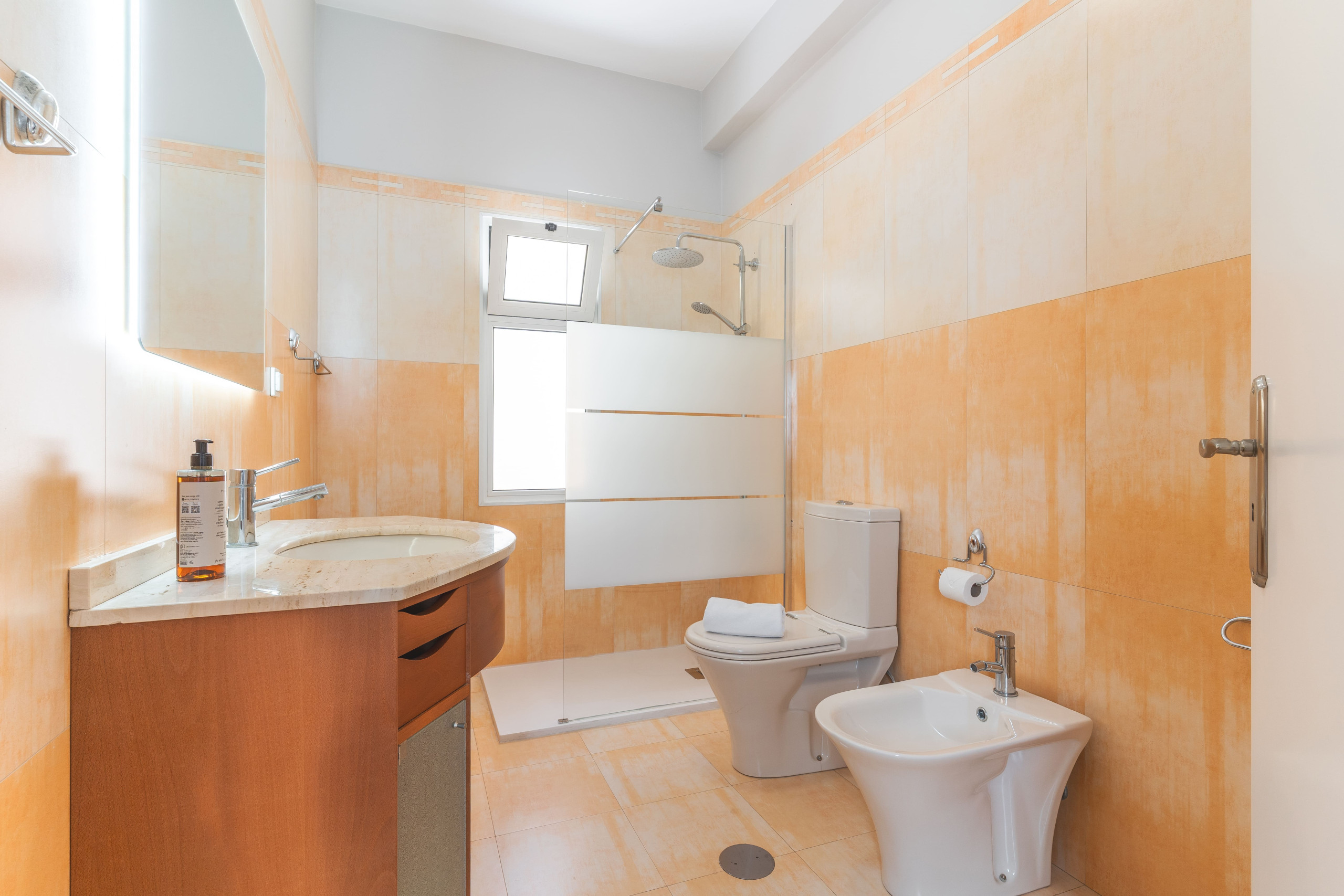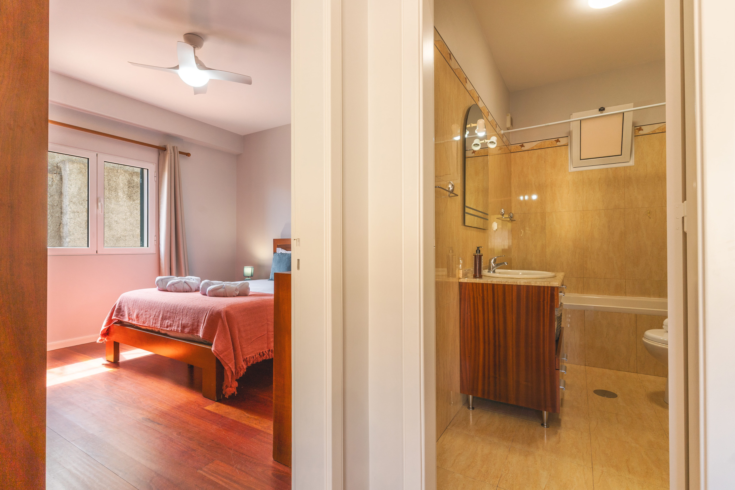 La propiedad dispone de tres dormitorios, cada uno con cama de matrimonio, y uno de ellos cuenta además con una cama individual. Hay dos baños: uno con ducha y otro con bañera, ofreciendo comodidad a todos los huéspedes.
