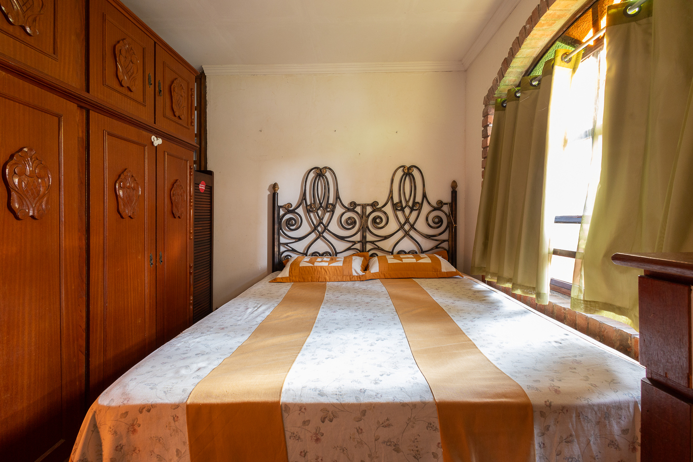 - Habitación 1: cama de matrimonio, armario de bancada y ventilador de techo