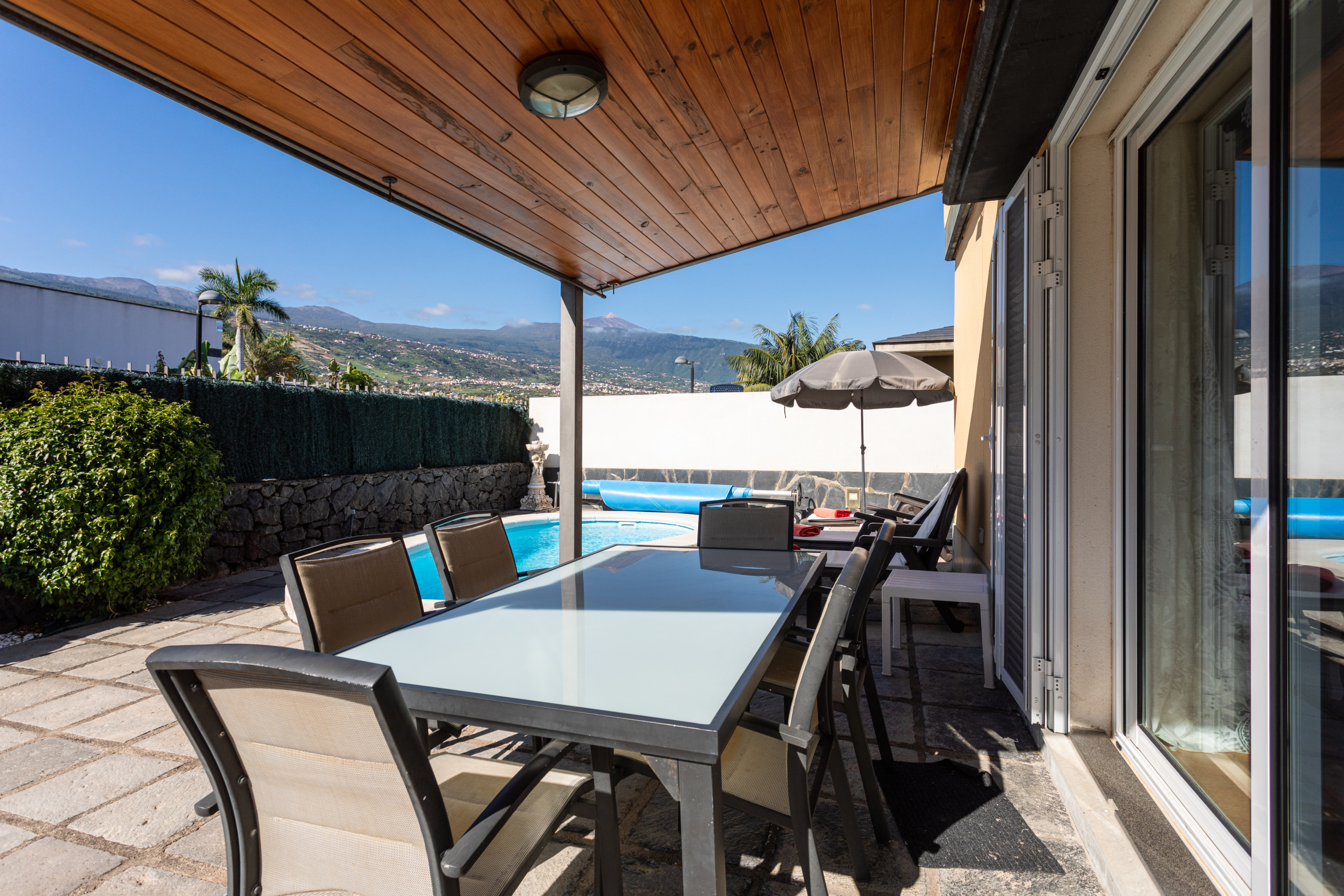 Esta luminosa y moderna villa se encuentra en una exclusiva y tranquila zona residencial de Puerto de la Cruz, perfecta para familias que buscan confort, privacidad y buenas conexiones con el resto de la isla. La propiedad ofrece una experiencia de alojamiento de alta calidad, con piscina privada climatizable (opcional con suplemento), conexión wifi gratuita, TV vía satélite y espacio para hasta 8 personas.