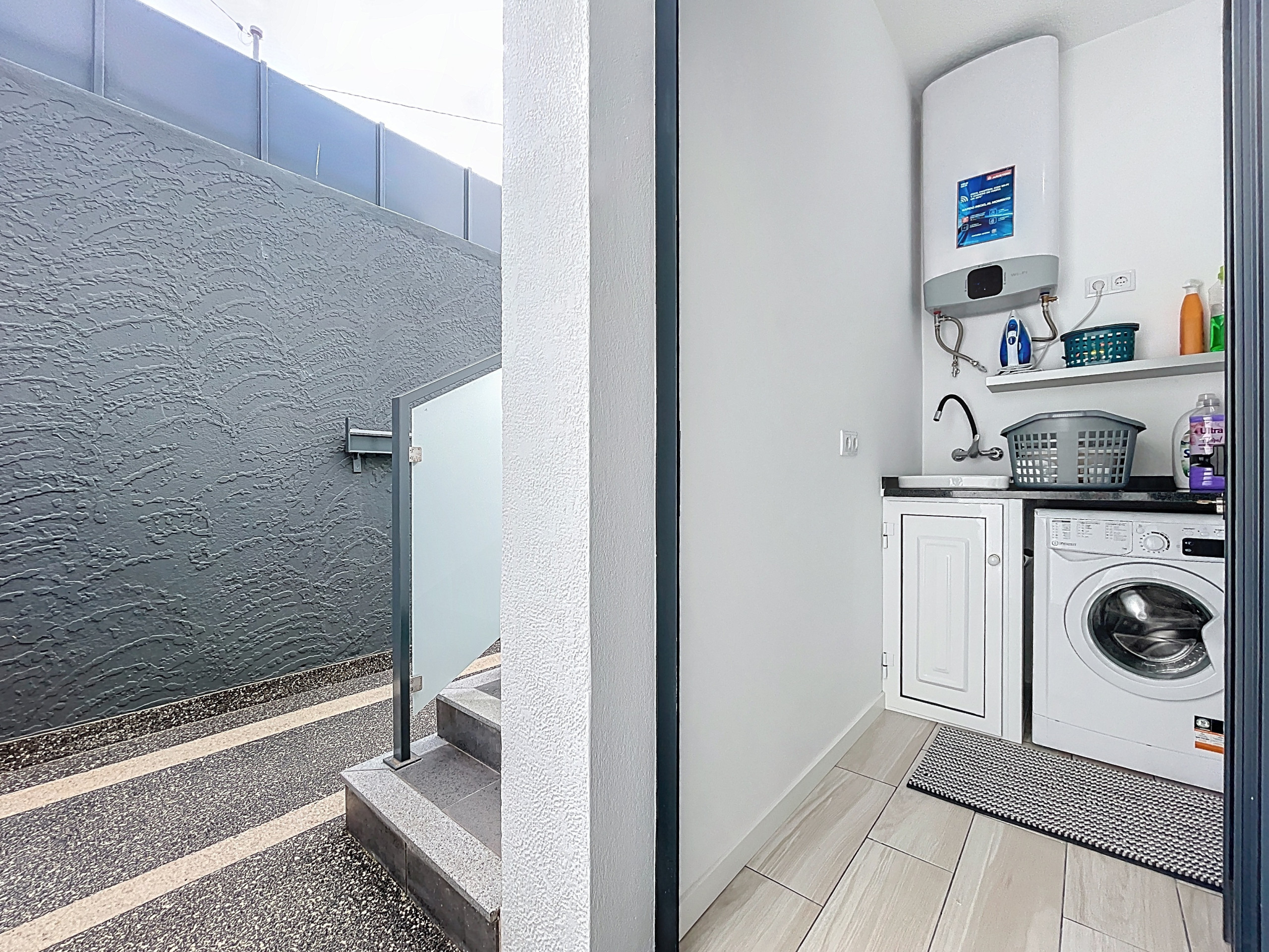 La casa incluye un baño completo con ducha y bañera y un aseo adicional. La cocina está totalmente equipada con todo lo necesario para cocinar a diario, incluyendo nevera, congelador, horno, microondas, vitrocerámica, cubiertos, platos, lavavajillas y otros utensilios esenciales. También hay lavadora y secador de pelo.
