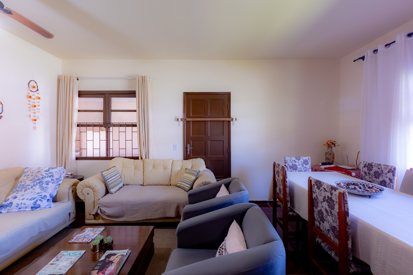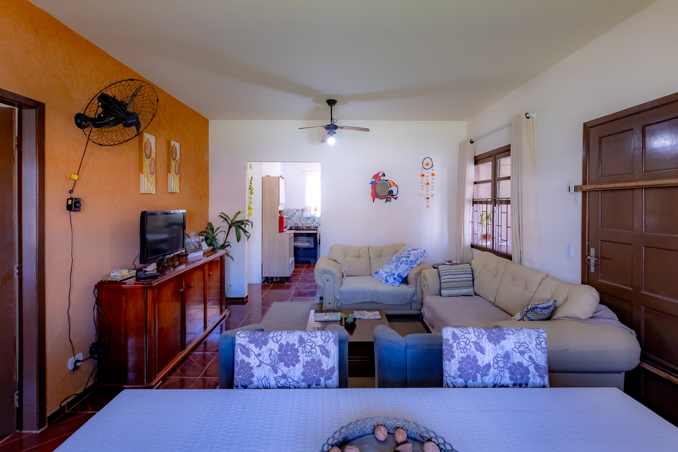 - Sala amplia con sofá, sillón, mesa de comedor y TV por cable