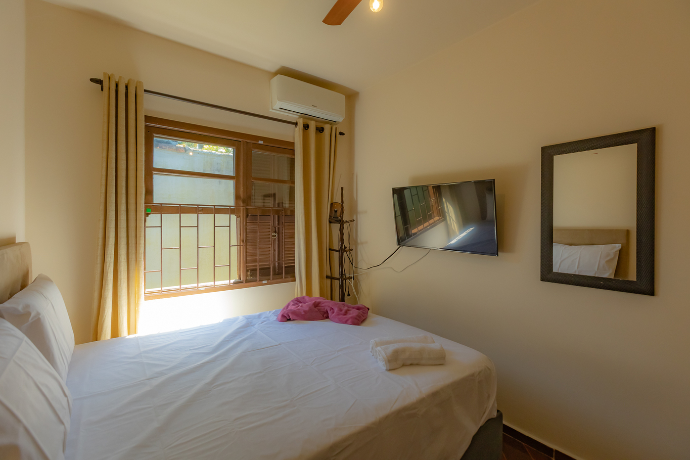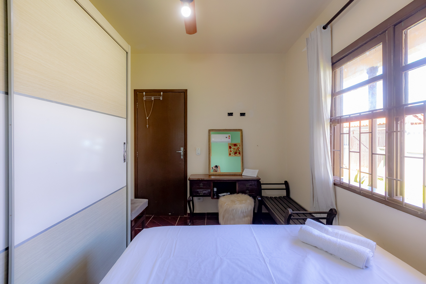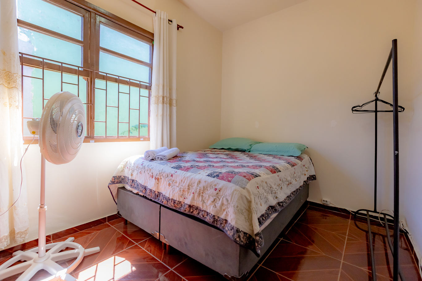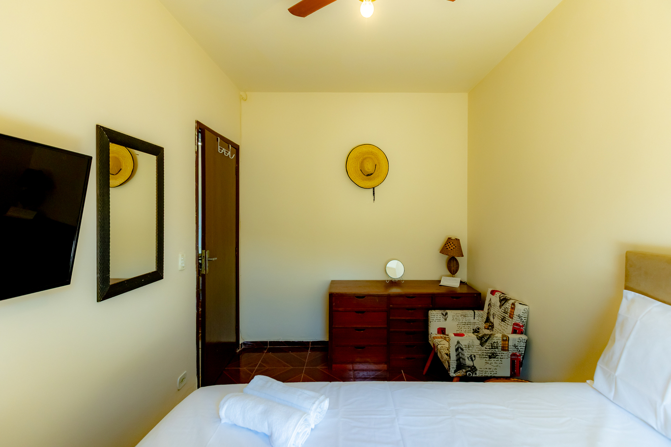 - Habitación 3: cama de matrimonio, ventilador de techo, armario y ropa de cama y toallas