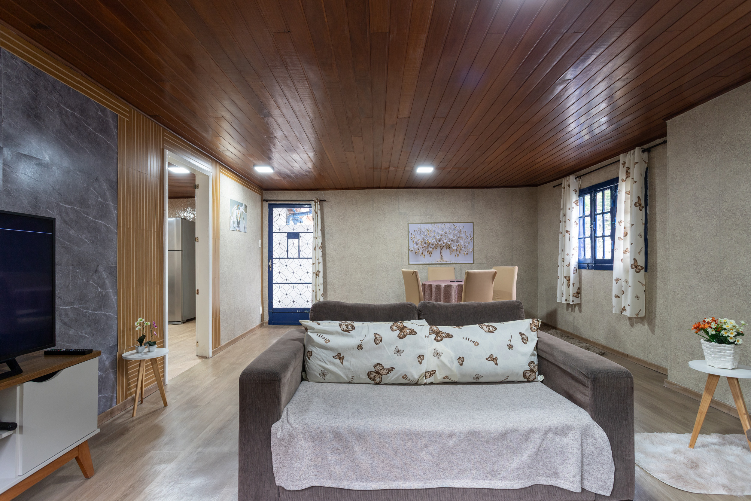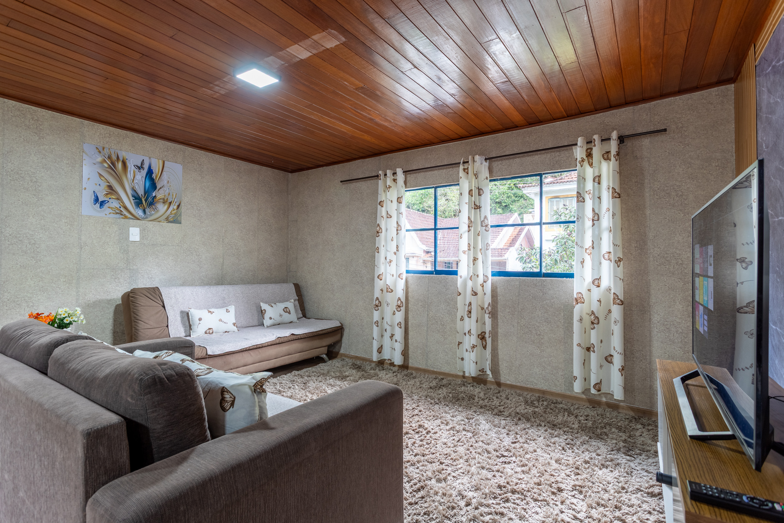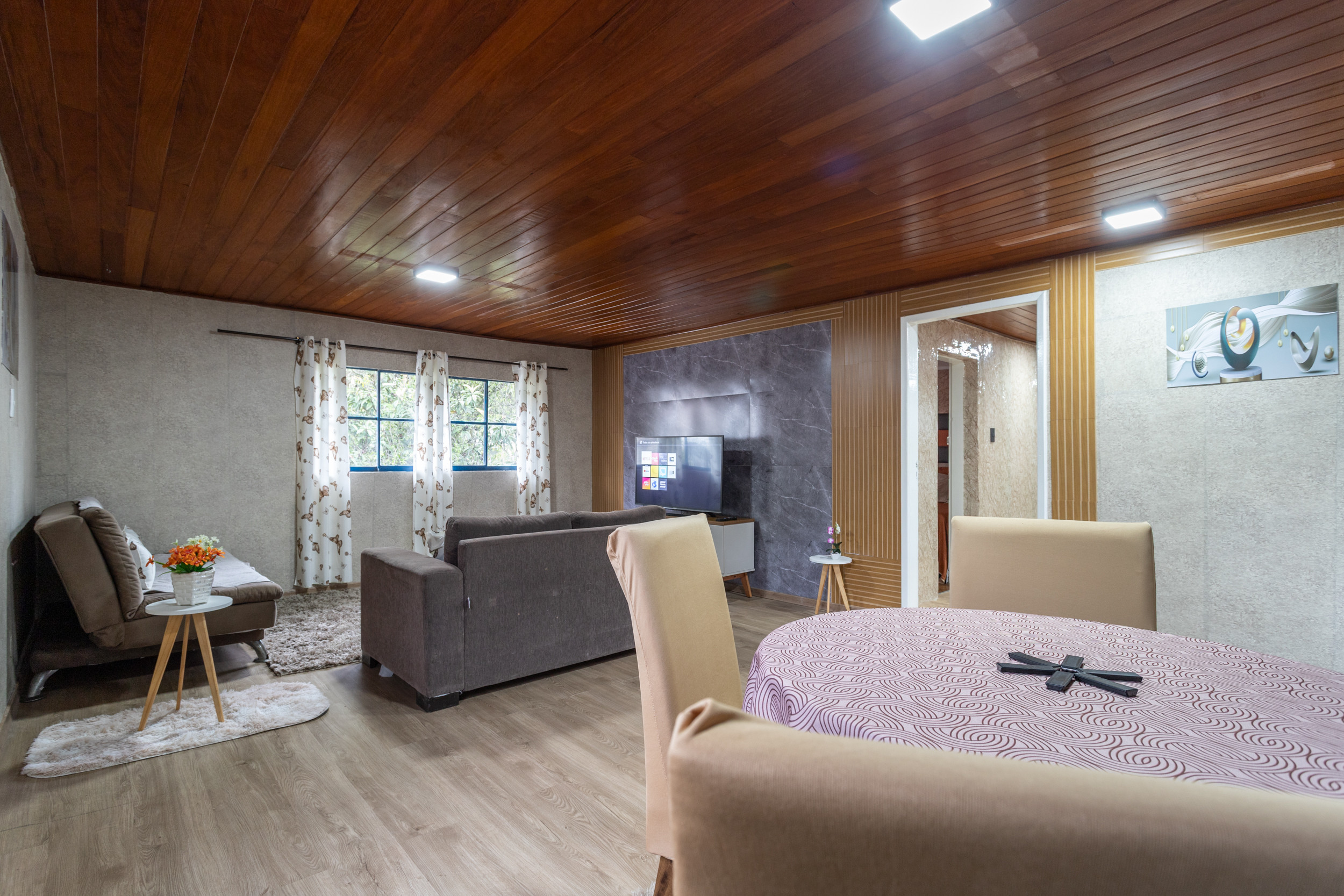 - Sala con dos sofás-cama, TV y ambiente ventilado con buena iluminación natural