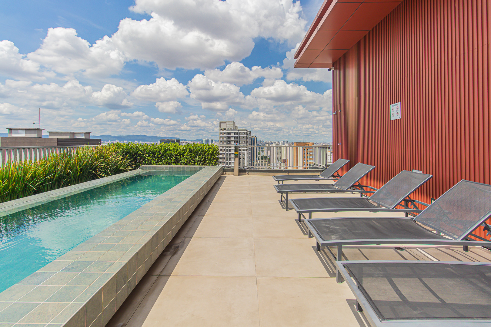 El edificio ofrece una excelente infraestructura, con piscina y cocina compartida en la planta 24, además de lavandería, gimnasio y espacio de coworking en la planta 5.